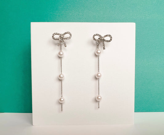 Beautiful Crystal Bow and Pearl Drop Earrings