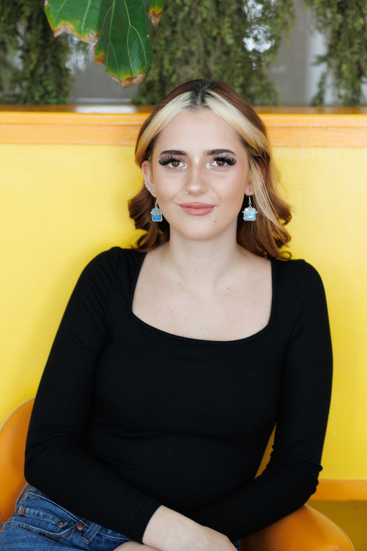 Midnight Moon Crescent Earrings with Pressed Flowers