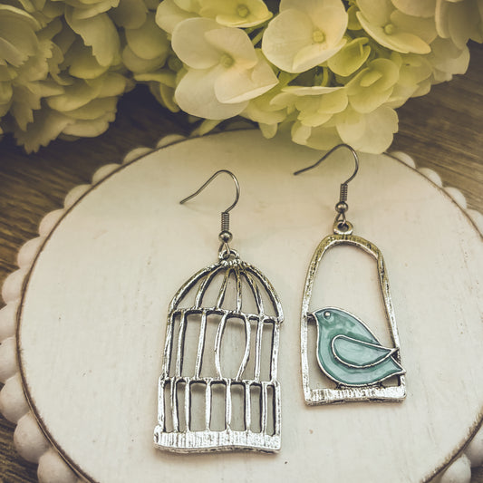 Beautiful Icy Blue/Gray Wood and Cork Earrings