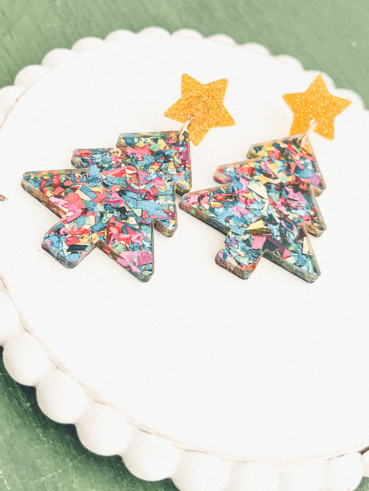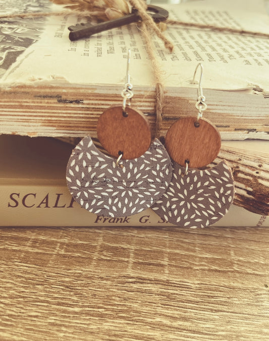 Beautiful Geometric Wood and Gold Pattern Earrings