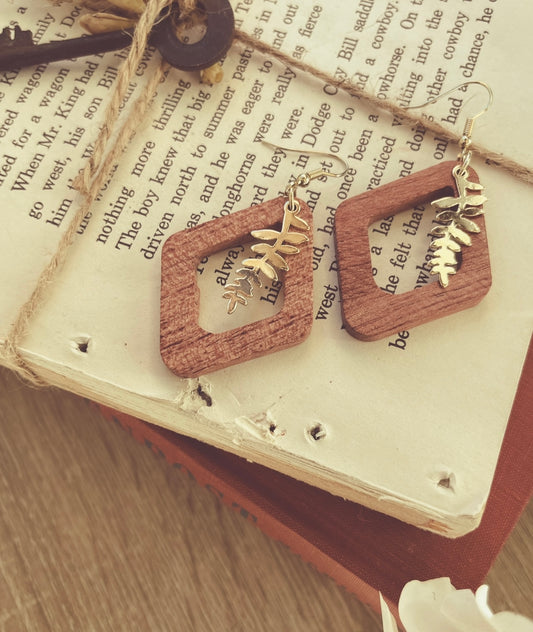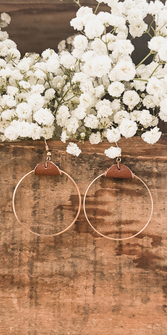 Beautiful Retro Wood and Leather Circle Hoop Earrings