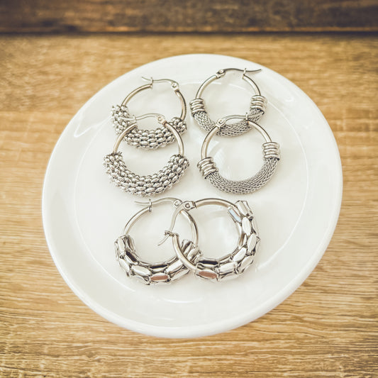 Beautiful 3 Pair Set of Silver Hoop Earrings