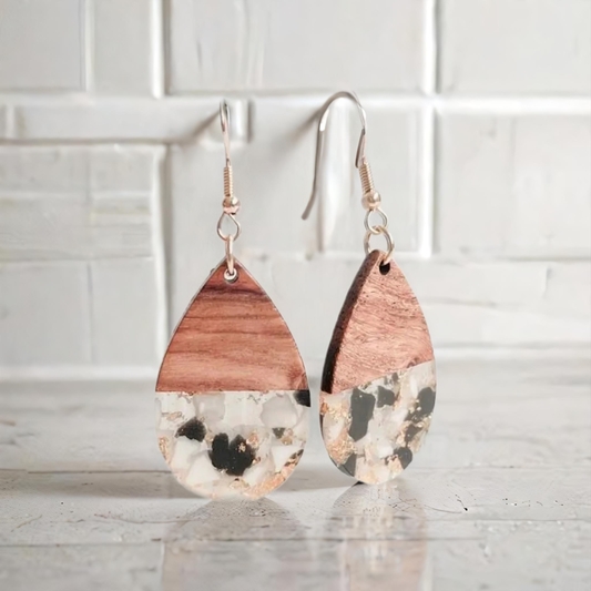 Beautiful Wood and Resin Neutral Confetti Earrings