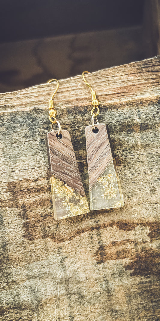 Beautiful Wood and Gold Fleck Resin Earrings