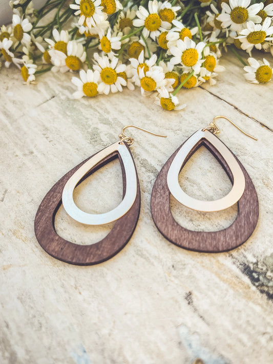 Beautiful Wood and Gold Drop Earrings