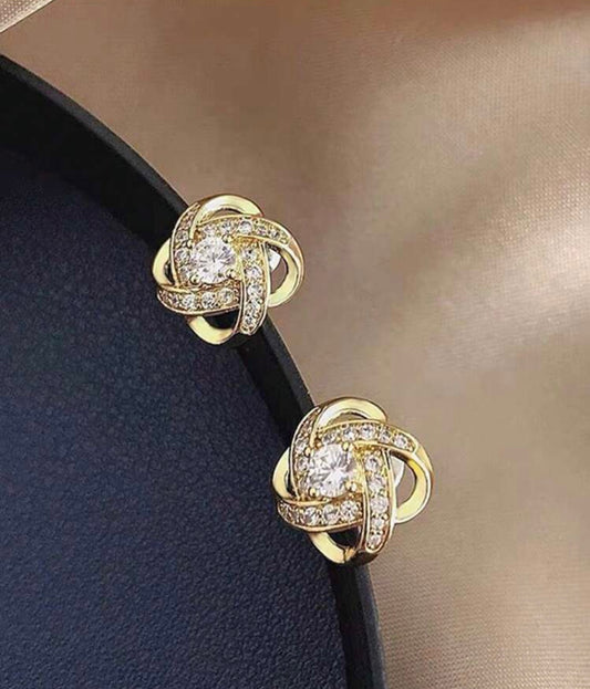 Beautiful Dainty Gold or Silver and Crystal Twist Stud Earrings