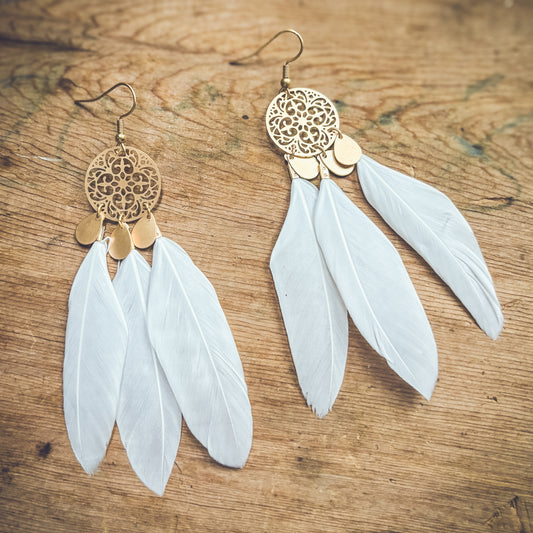 Beautiful Gold and White Feather Earrings