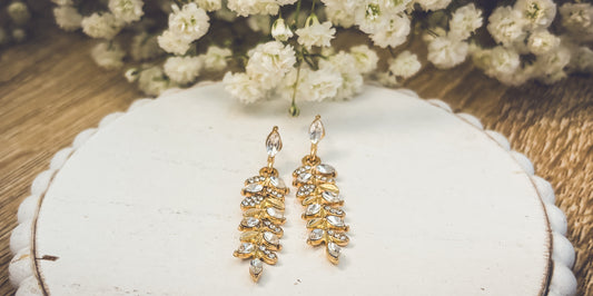 Beautiful Crystal and Gold Drop Leaf Earrings