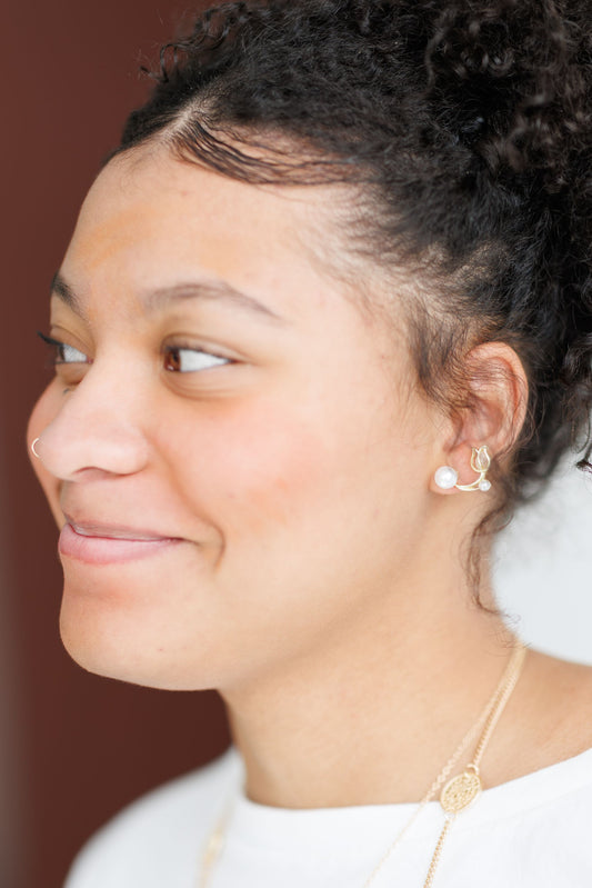 Beautiful Pearl and Tulip Flower Jacket Earrings