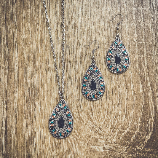 Beautiful Boho Pink Crystal Necklace and Earring Set