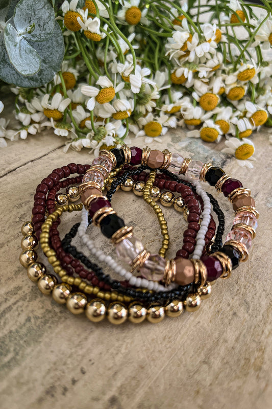 Beautiful Gold and Burgundy Stacking Bracelet Set