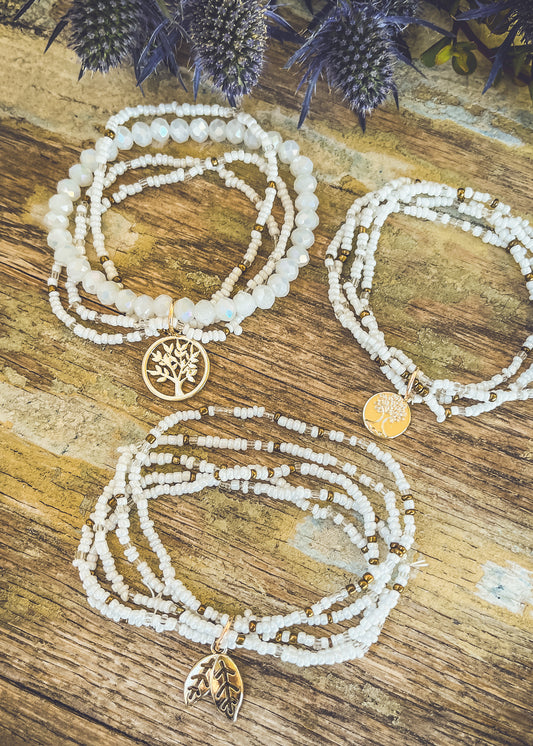 Beautiful Colorful Beads and Wood Tree of Life Bracelet Set