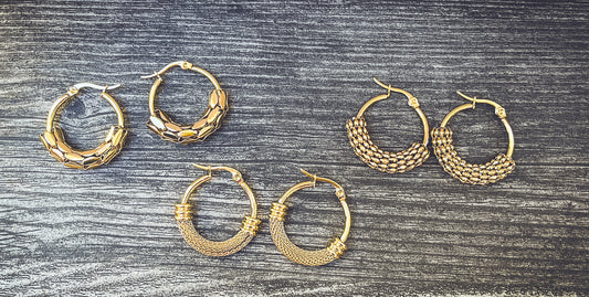 Beautiful 3 Pair Set of Gold Hoop Earrings