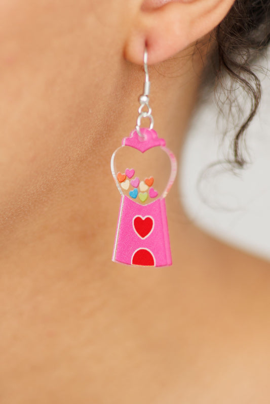 Beautiful Red, White, and Pink Wooden Heart Drop Earrings