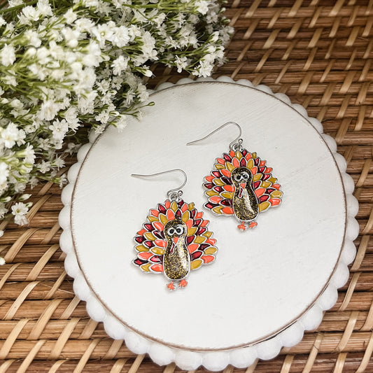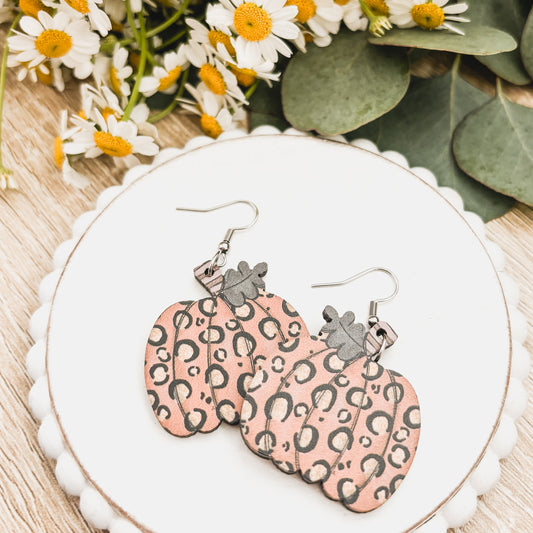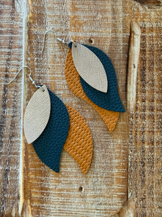 Beautiful Wood and Cork Orange and Turquoise Flower Earrings
