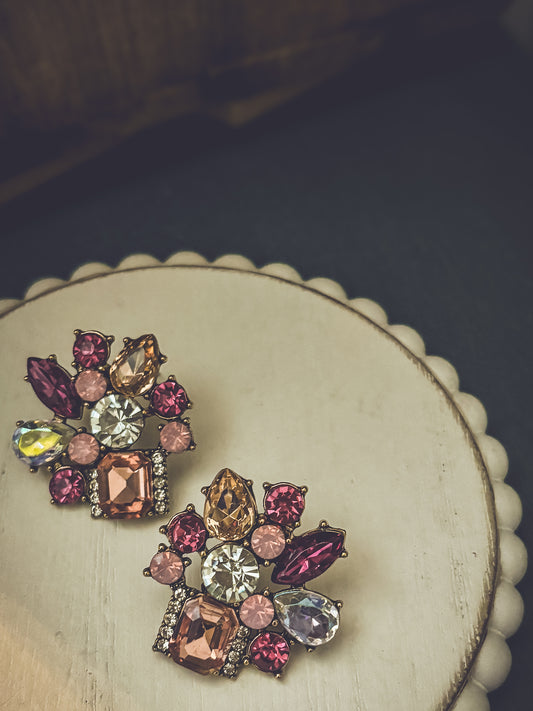 Beautiful Crystal and Gold Drop Leaf Earrings