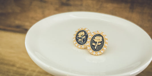 Beautiful Black and Pearl Rose Earrings