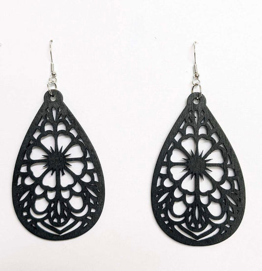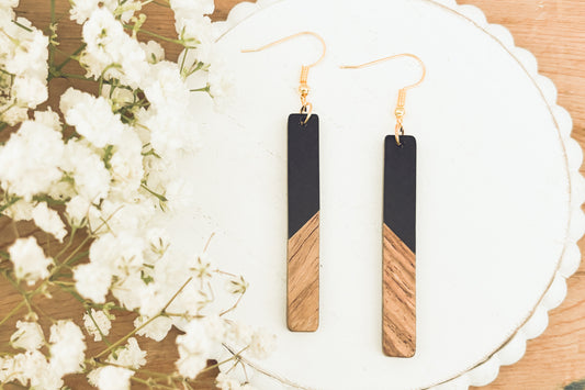 Beautiful Geometric Wood and Gold Poppy Earrings