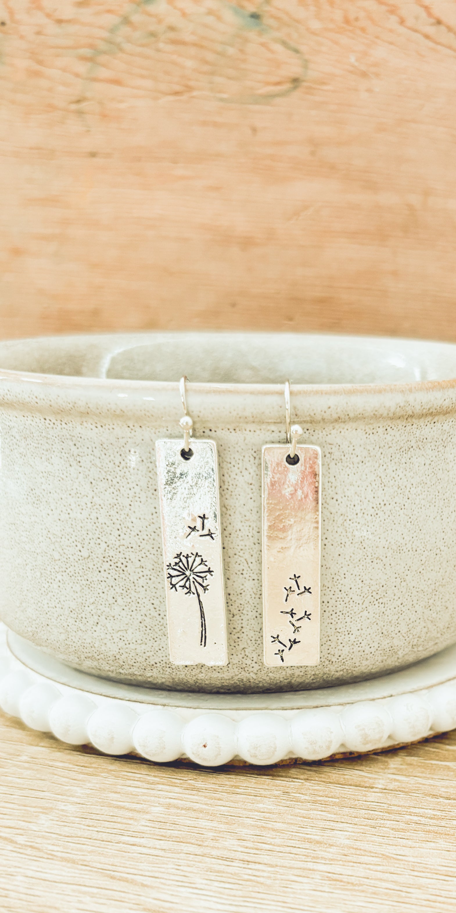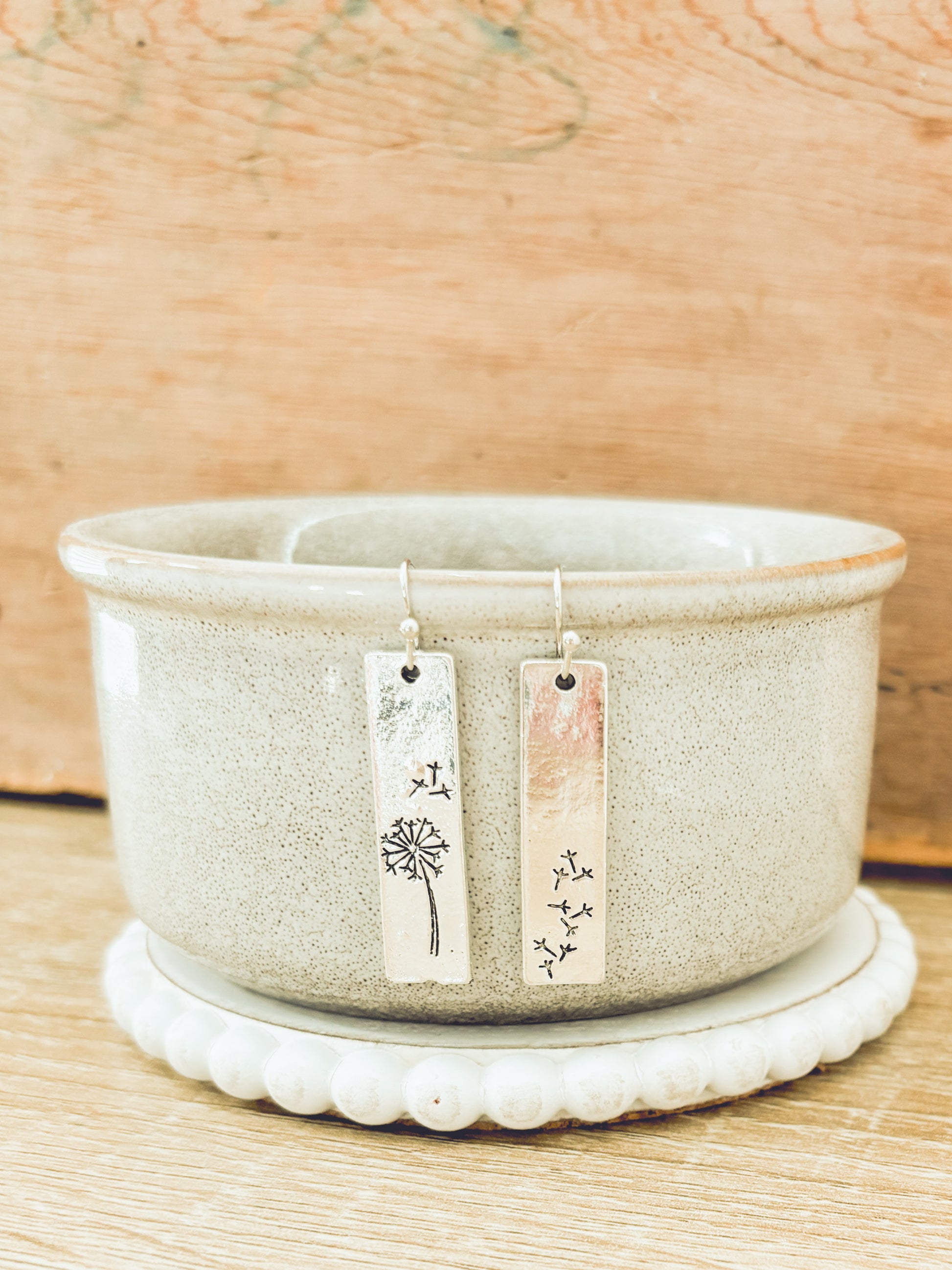 Silver Slat Dandelion Earrings