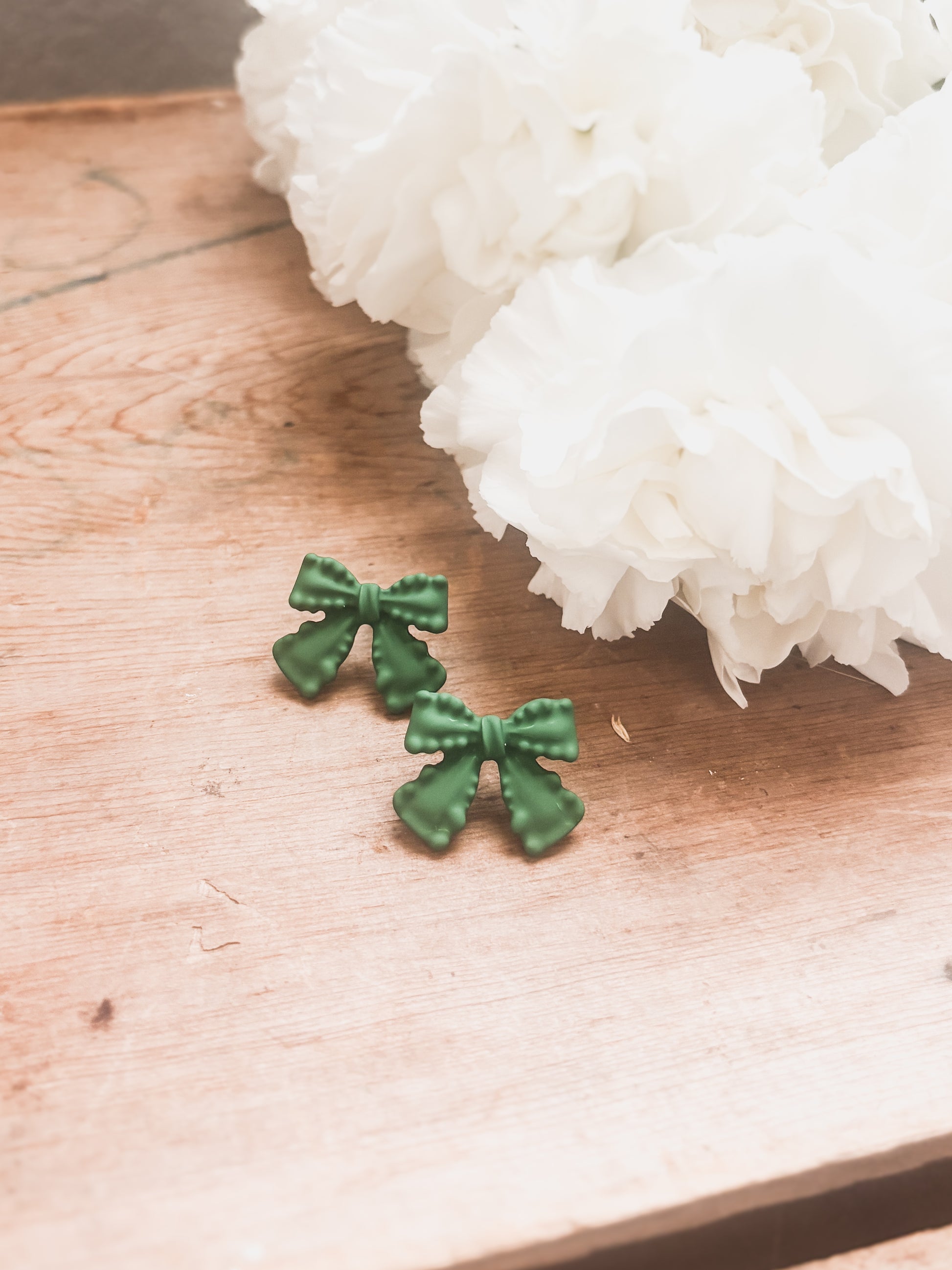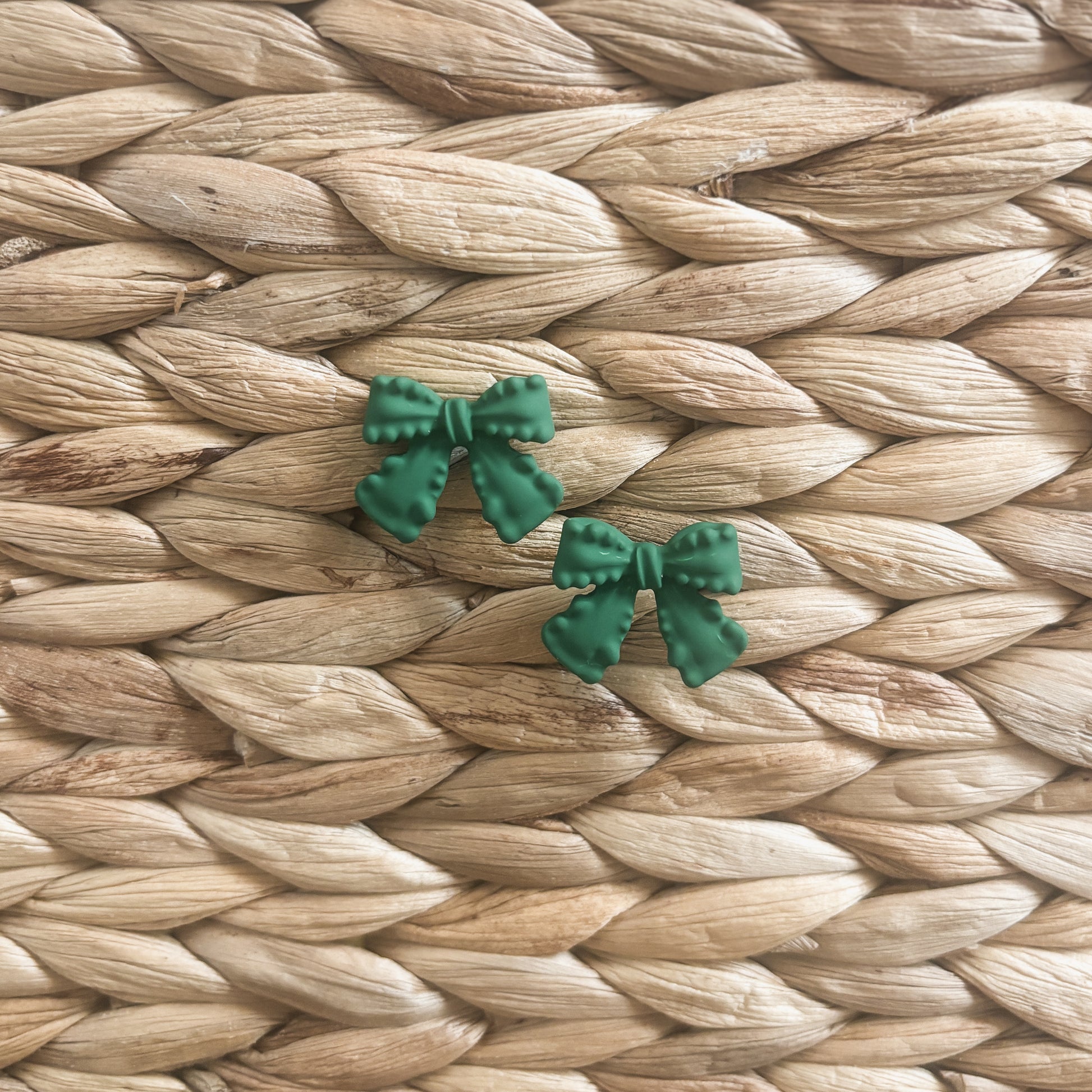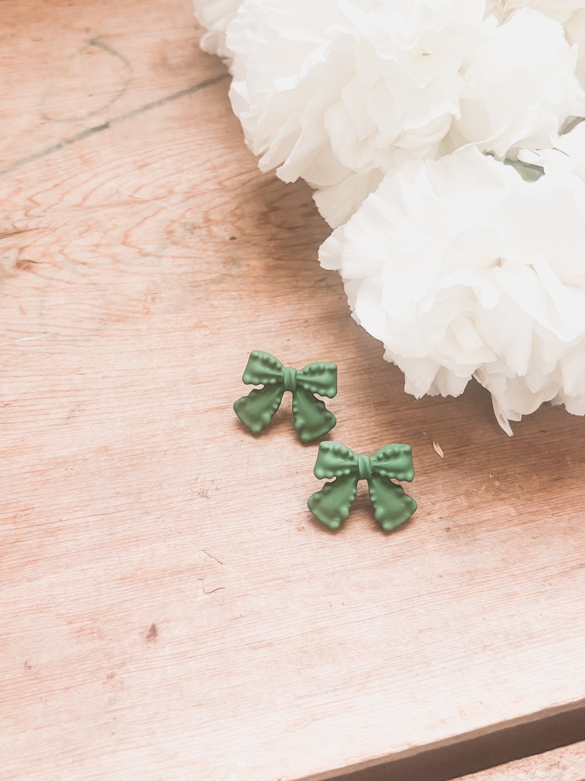 Elevate your style with these charming Adorable Green Bow Earrings. Delicately crafted, they add a touch of elegance to any outfit, perfect for both casual and formal occasions.