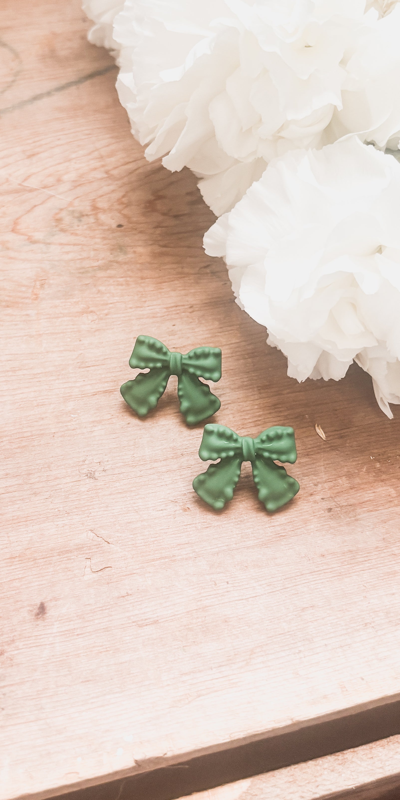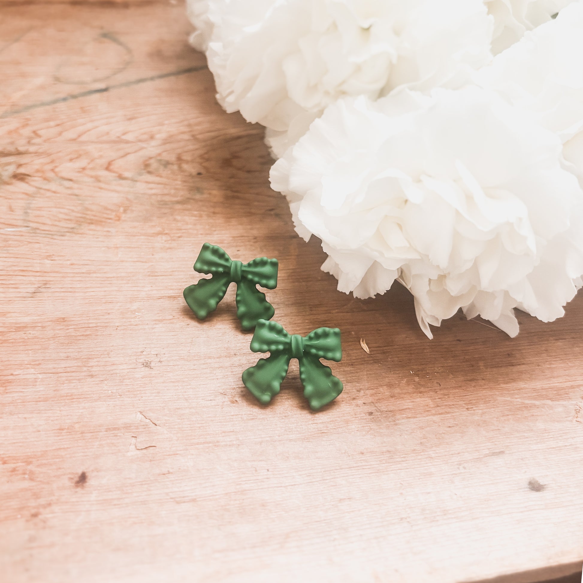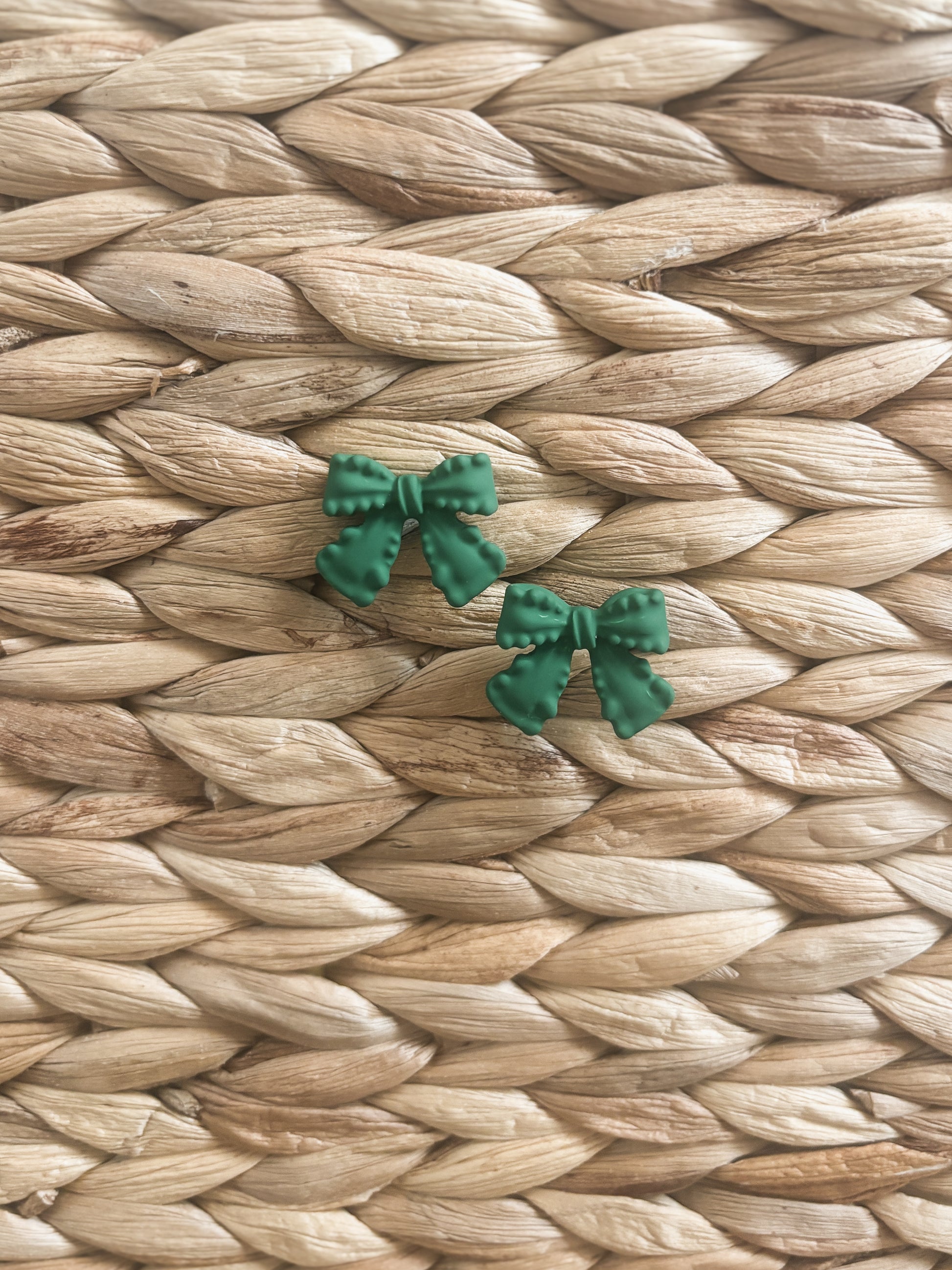 Elevate your style with these charming Adorable Green Bow Earrings. Delicately crafted, they add a touch of elegance to any outfit, perfect for both casual and formal occasions.