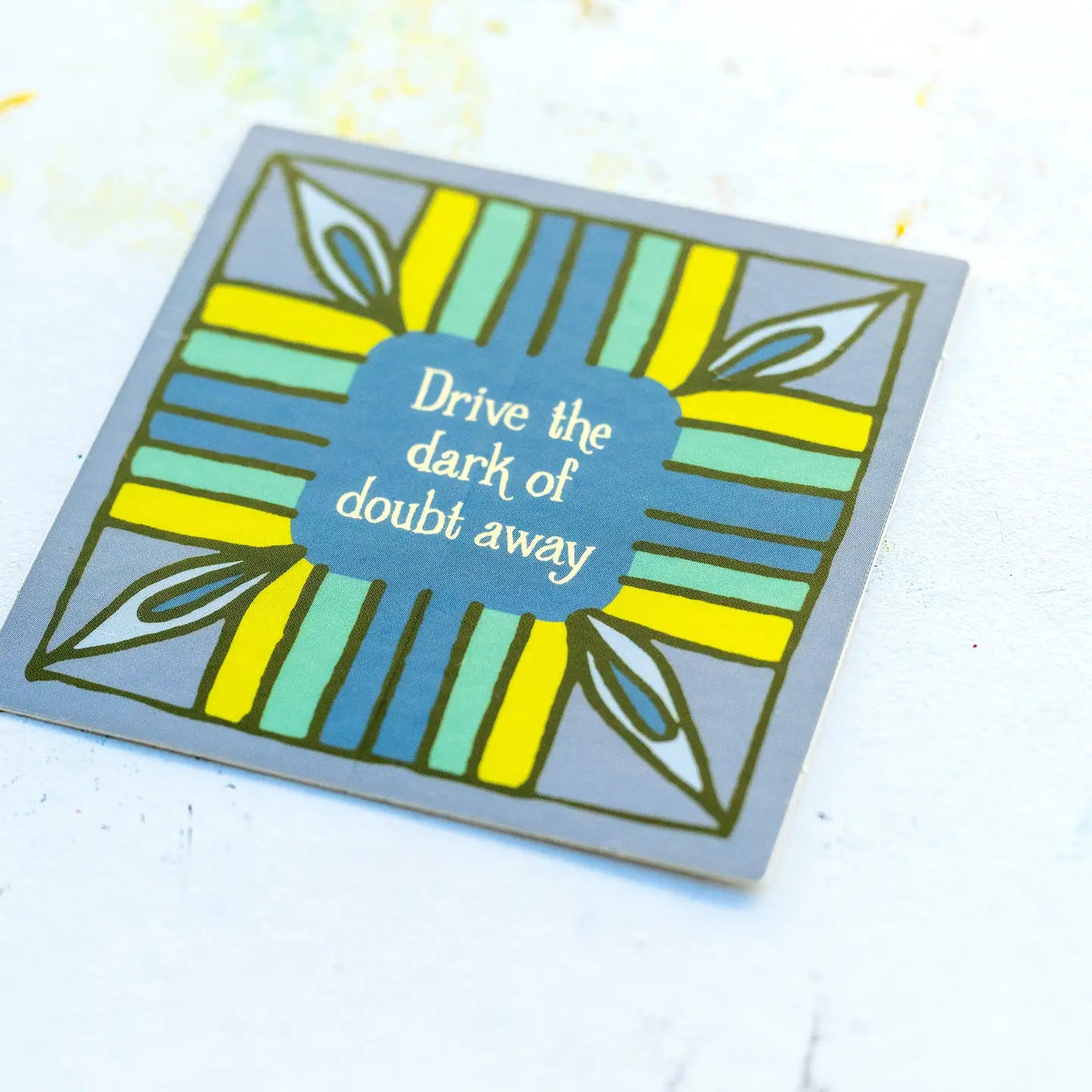 Introducing hymn stickers by Little Things Studio! The “Drive the Dark of Doubt Away” sticker, featuring hand lettered text from the hymn Joyful Joyful We Adore Thee offset by a striking linear design with a flame-like embellishment. Ready to be displayed wherever you need a word of encouragement. Soft matte finish with a “crack and peel” backing for easy and secure application. • Dimensions are 2.75" x 2.75" • Printed in full color • Outdoor durable (12-18 months) • Custom laser die cut • Made in USA • Fits best on flat surfaces