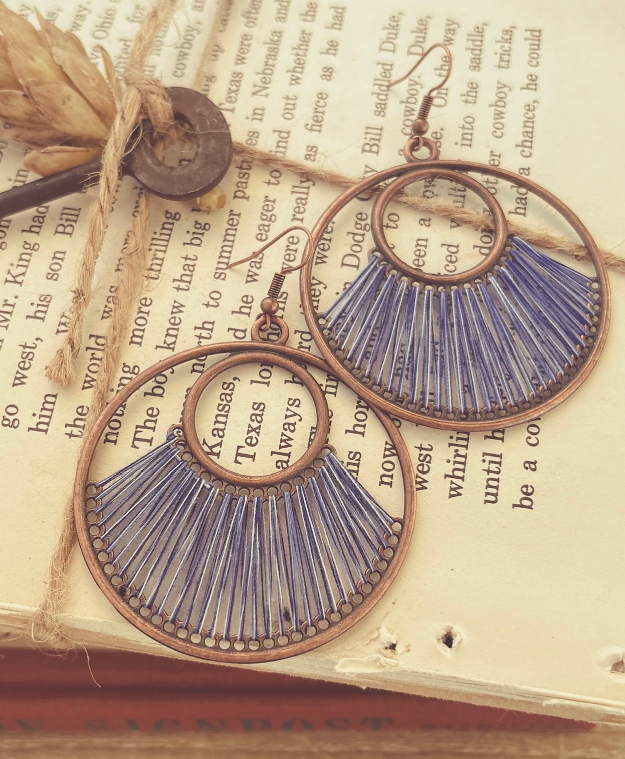 These Beautiful Artistic Blue String Earrings are a stunning addition to any jewelry collection, featuring delicate string detailing in a striking blue hue. Measures 2 inches.