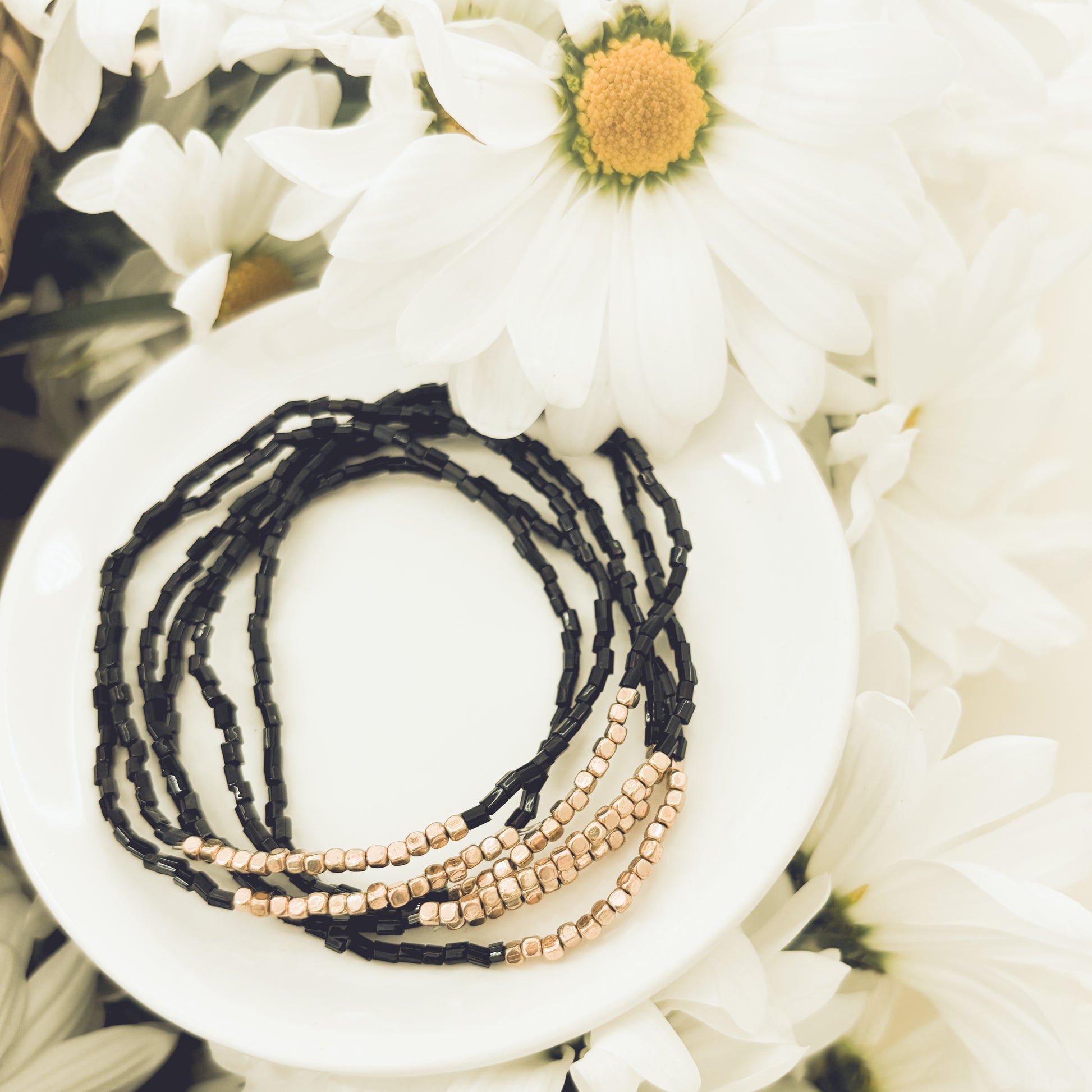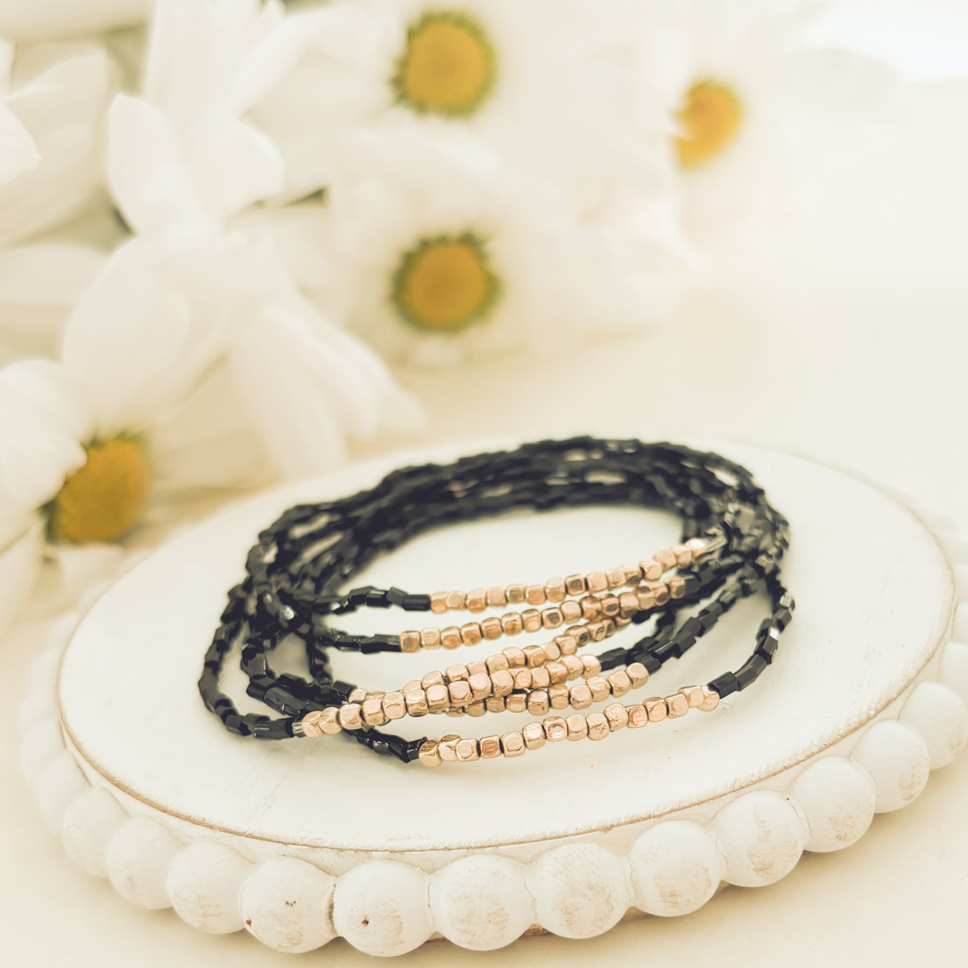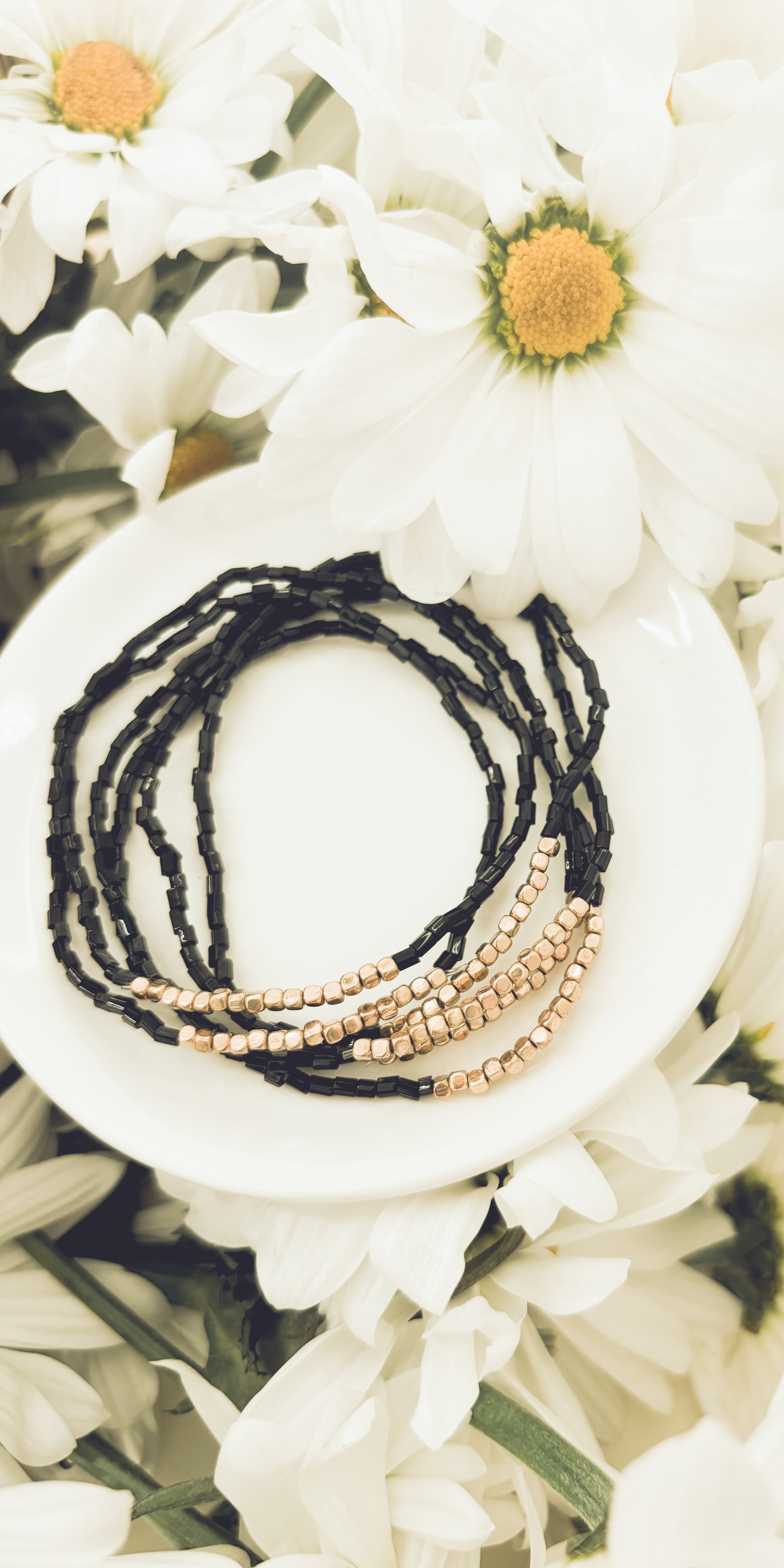 Elevate your style with our Black Stacking Bracelets. These beautiful pieces bring a touch of nature's beauty to your wrist. Mix and match for a stunning, boho-chic look.