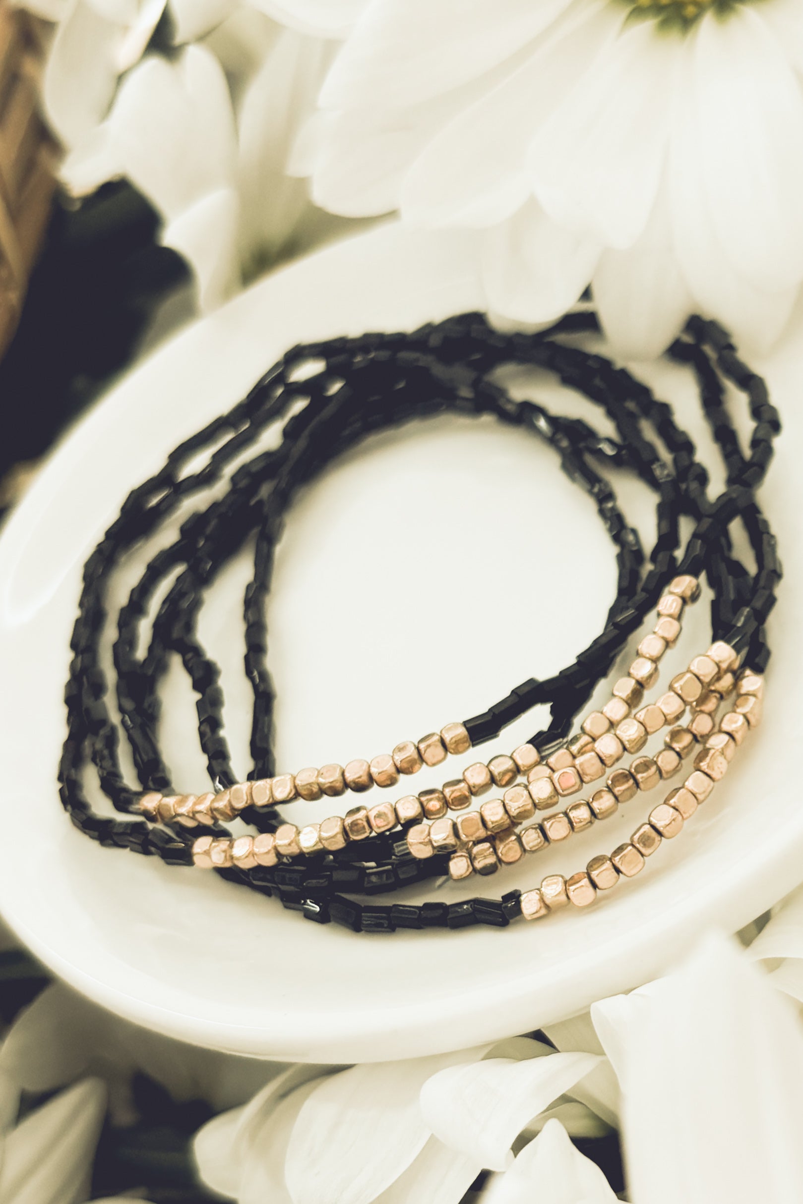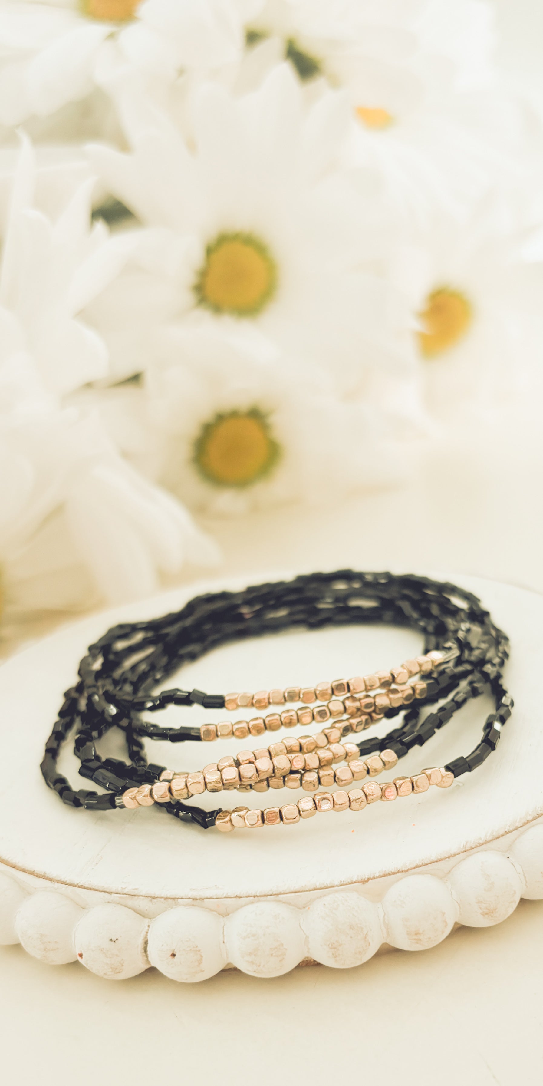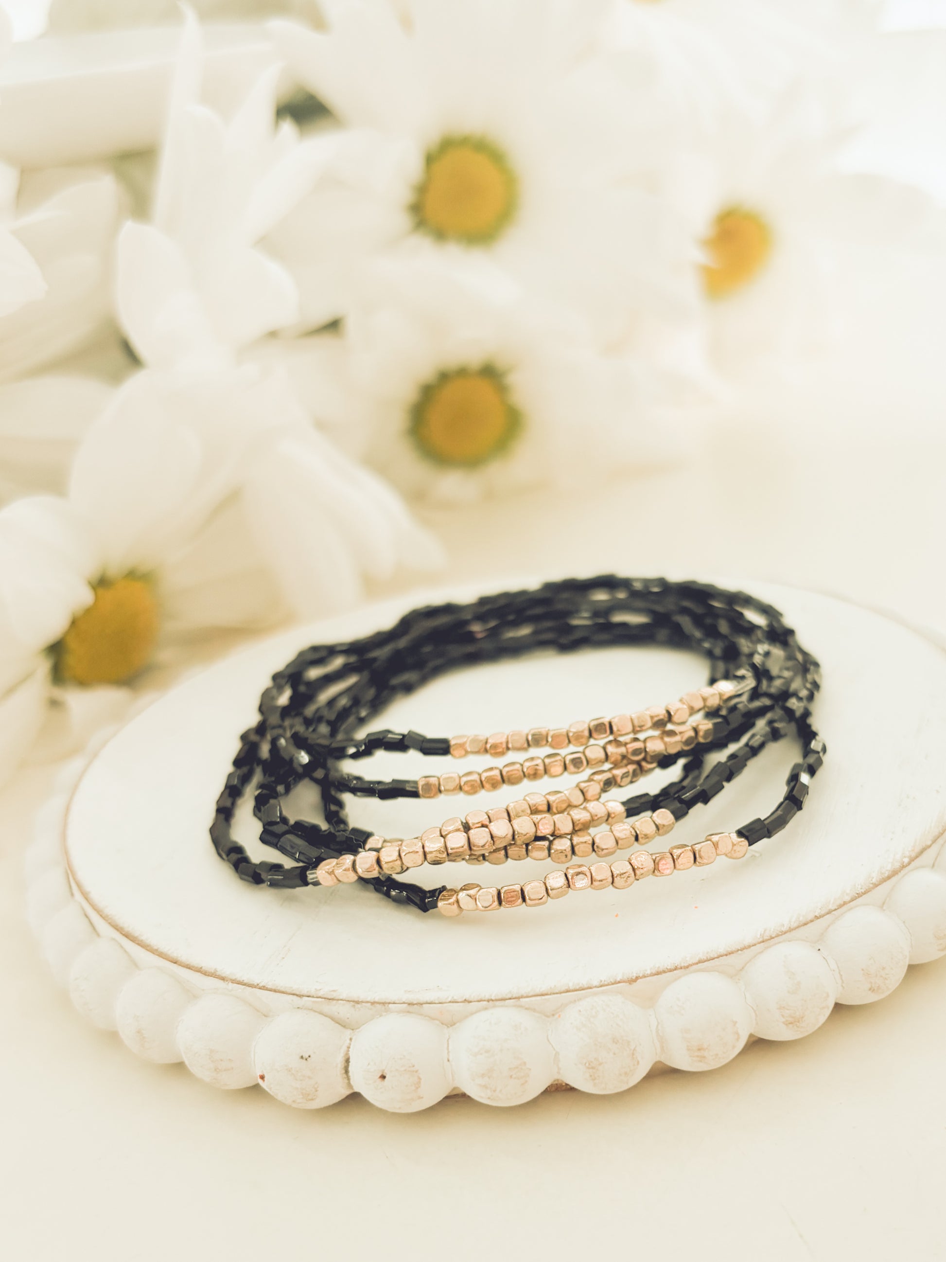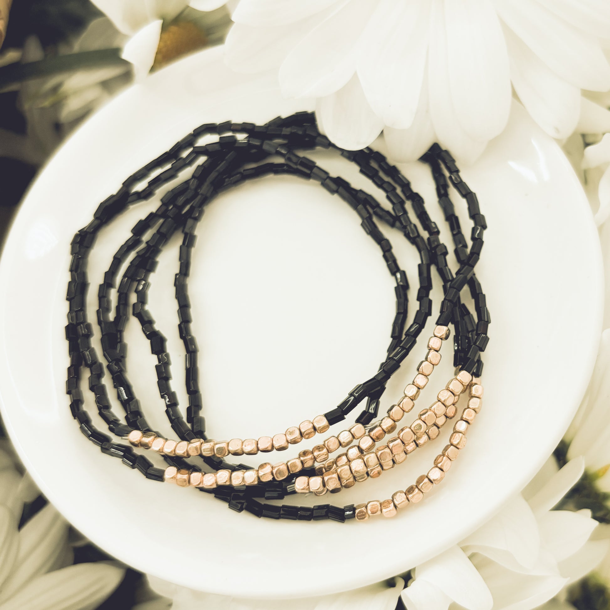 Elevate your style with our Black Stacking Bracelets. These beautiful pieces bring a touch of nature's beauty to your wrist. Mix and match for a stunning, boho-chic look.