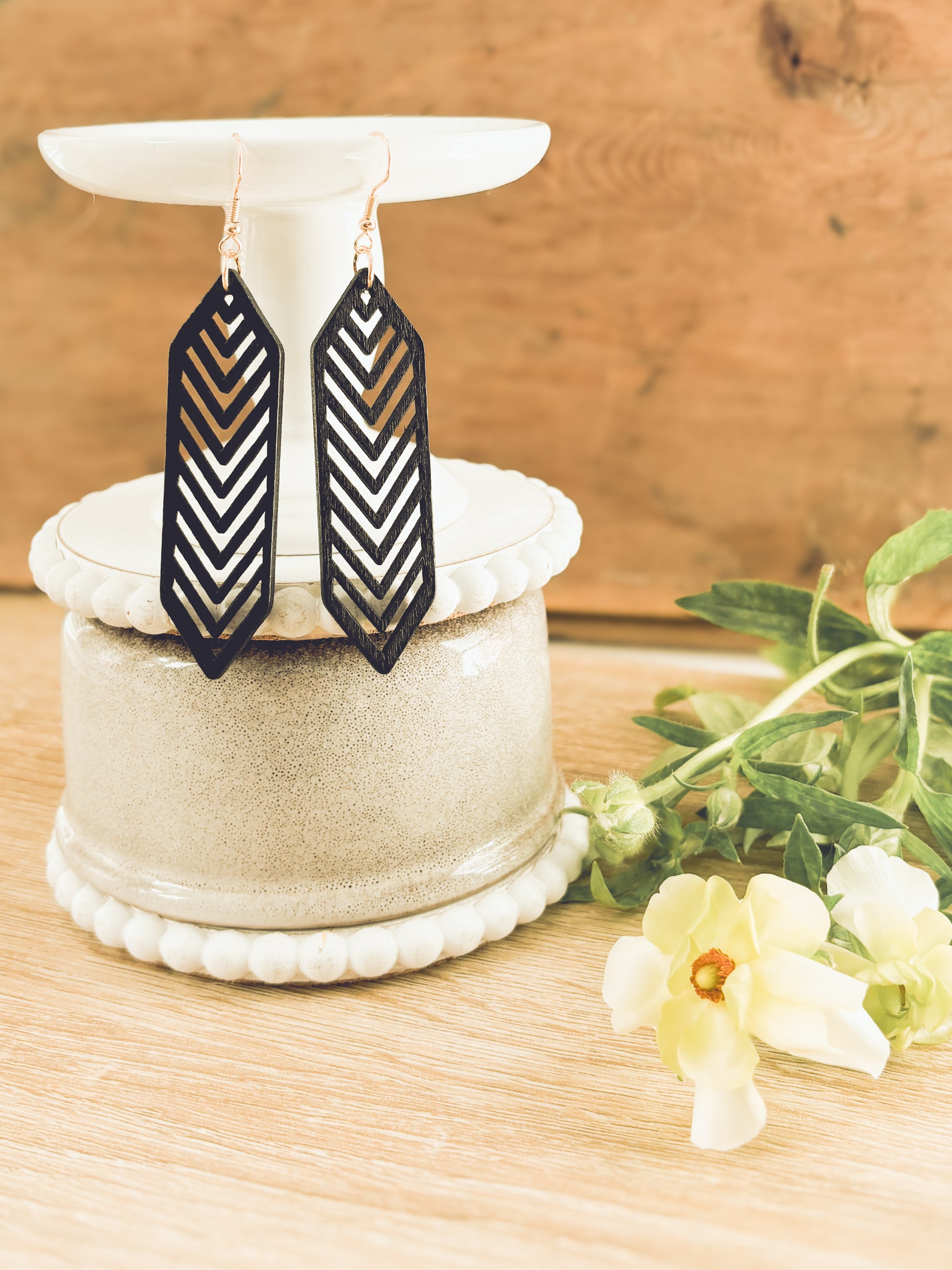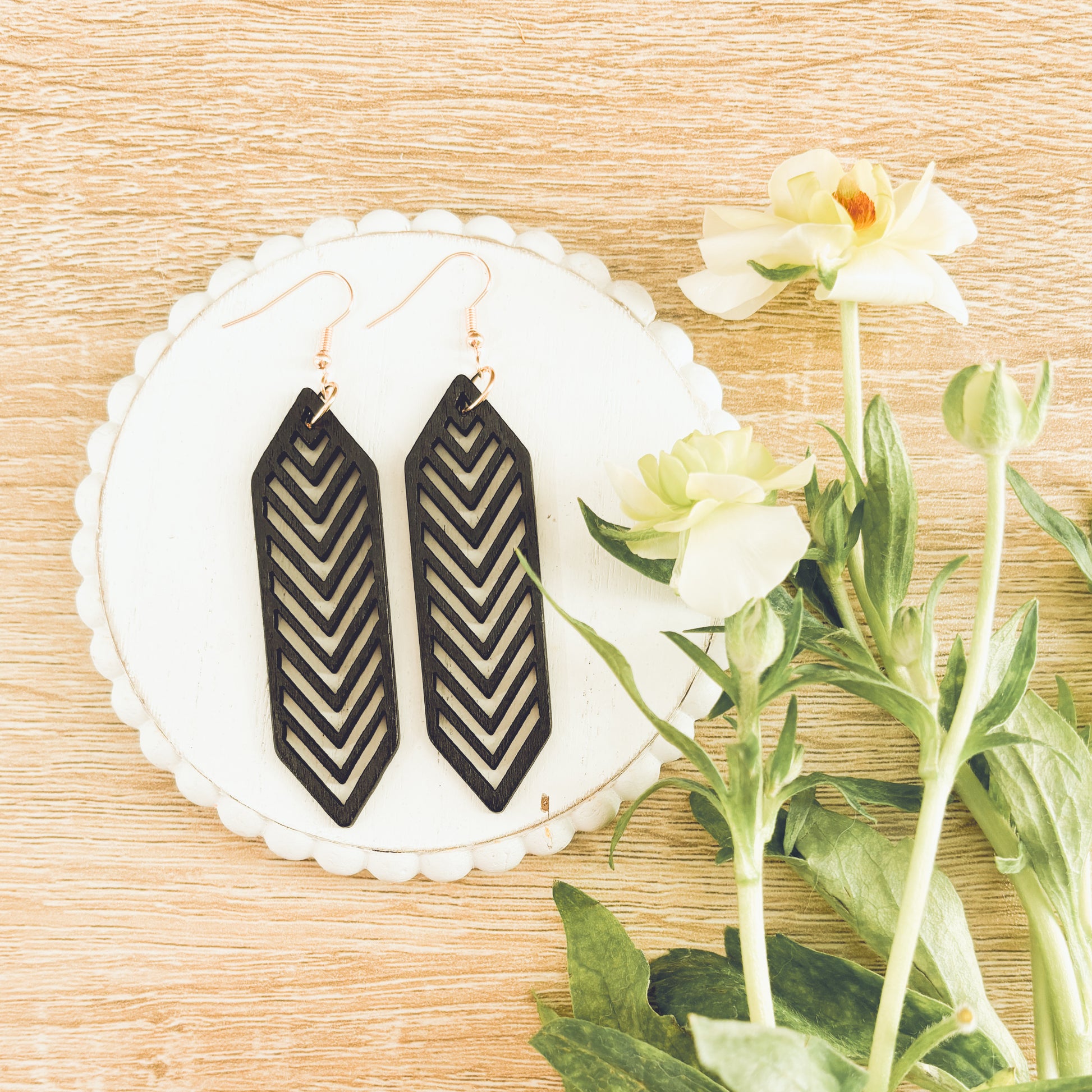 Beautiful Black Wooden Laser Cut Earrings