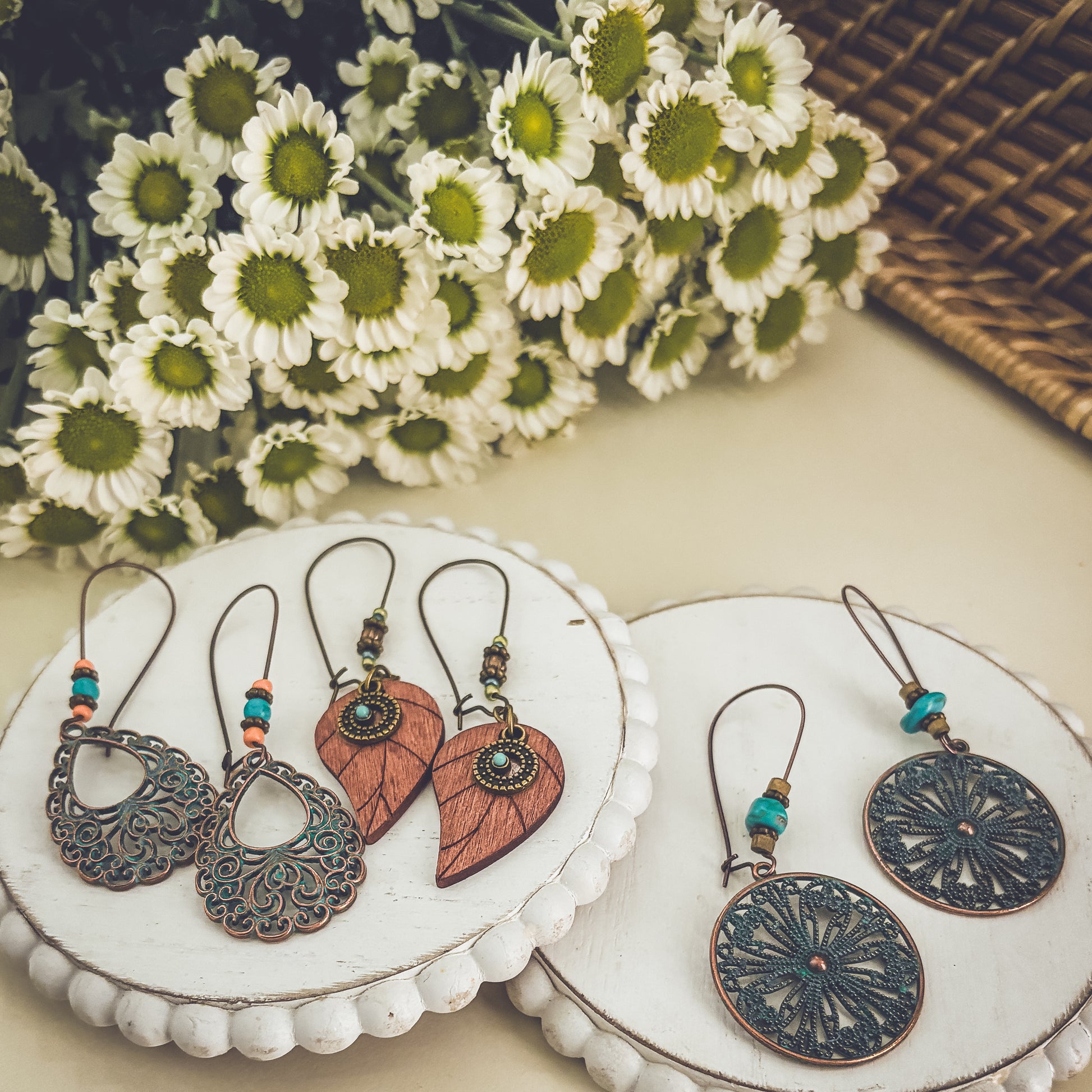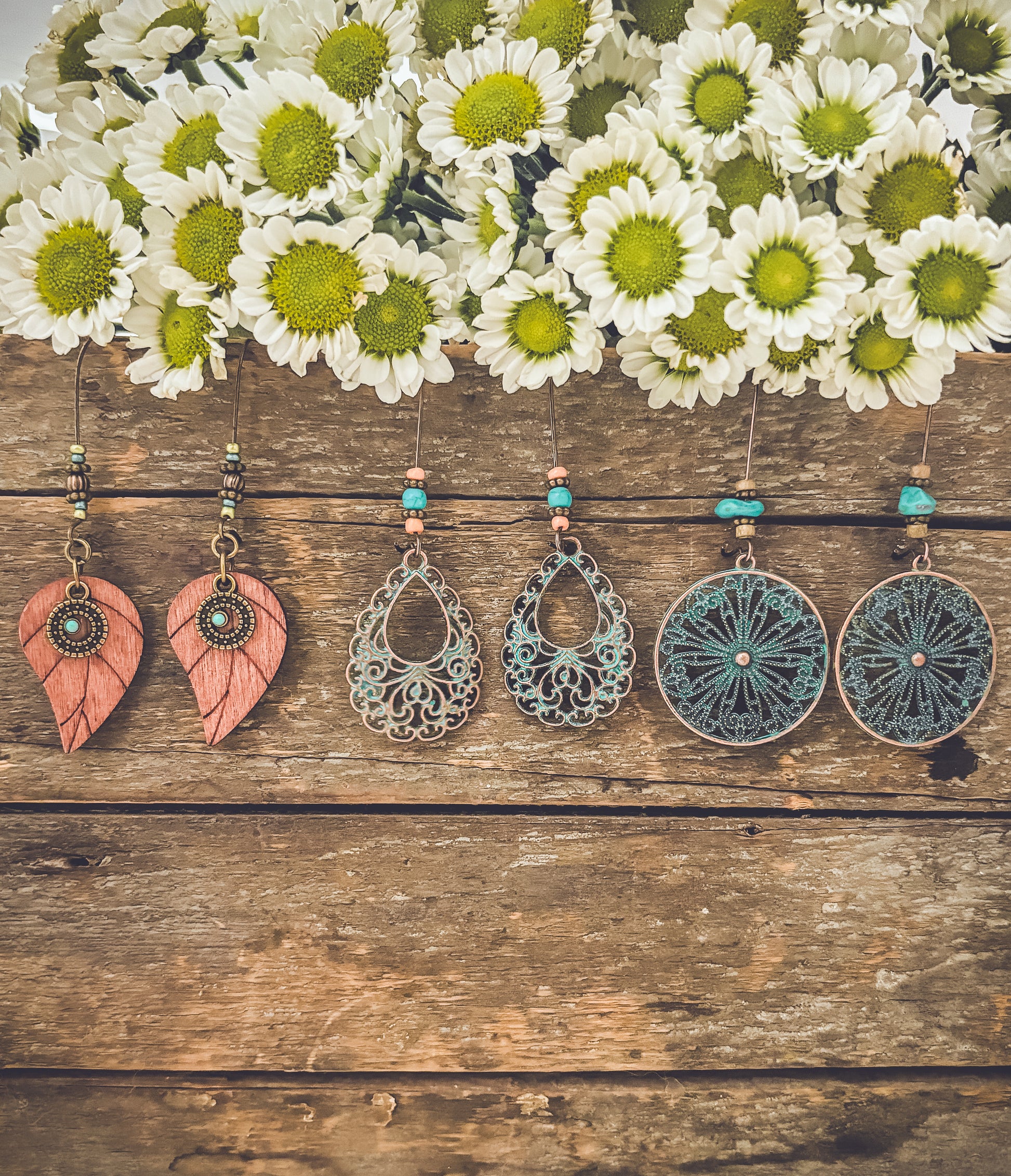 Beautiful Bohemian Earring Set: Set of 3 pairs radiating boho charm. Featuring eclectic designs and earthy tones, they add a free-spirited and stylish flair to any ensemble.
