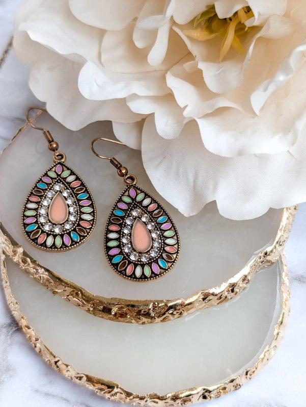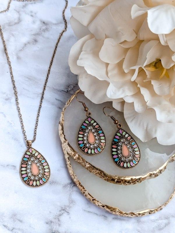 Beautiful Boho Pink Crystal Necklace and Earring Set