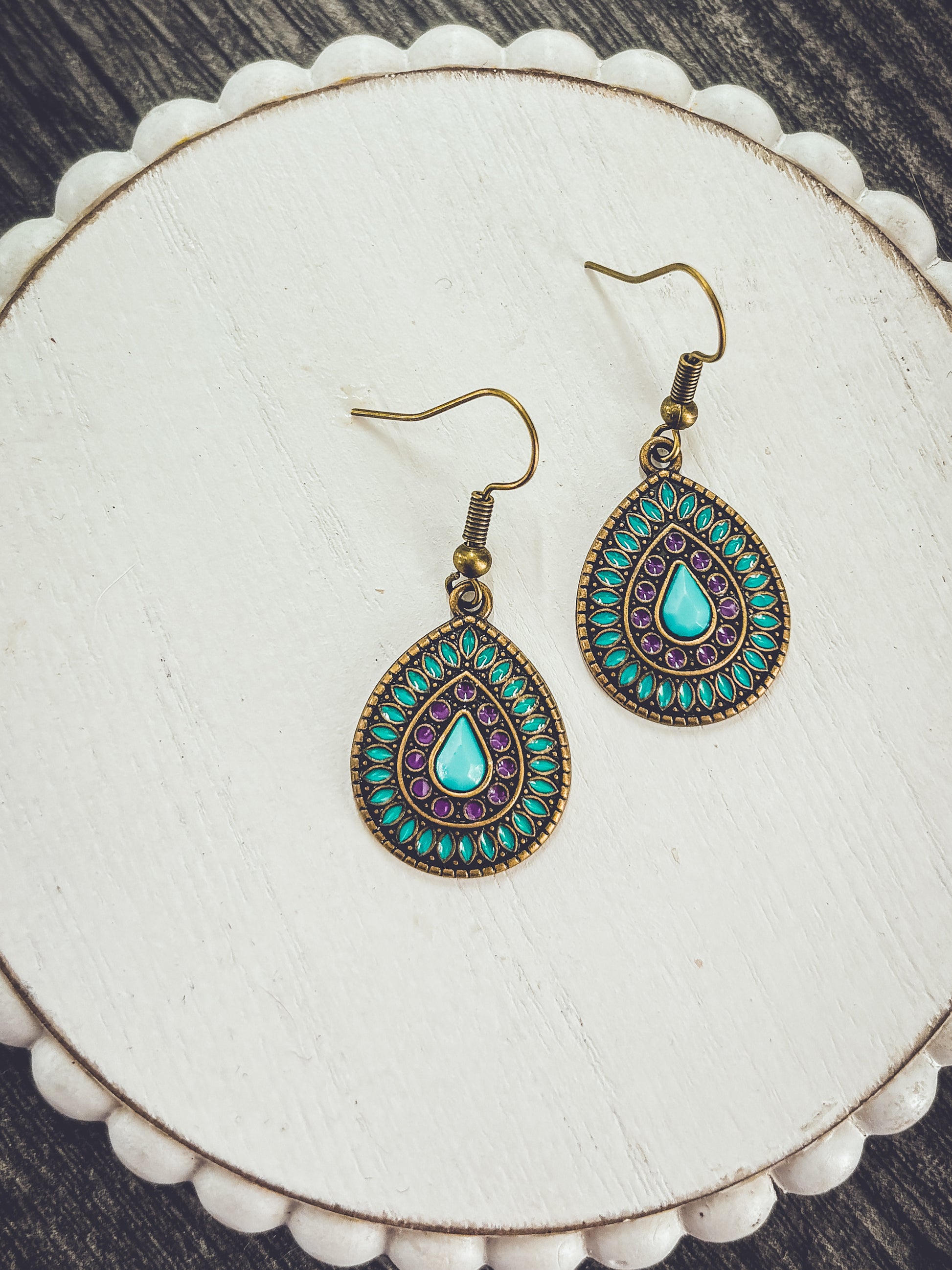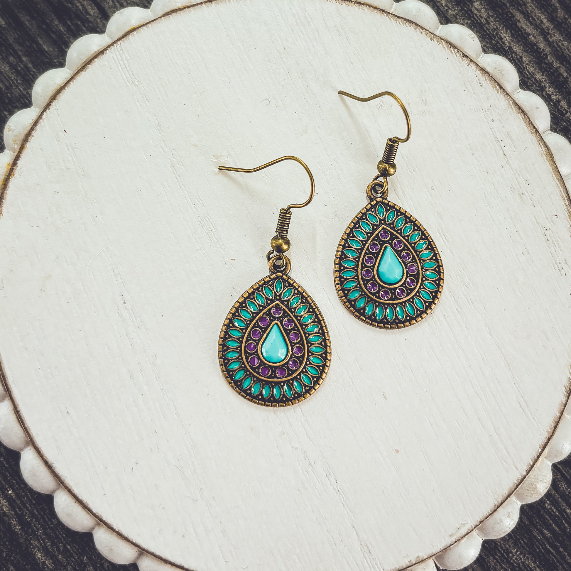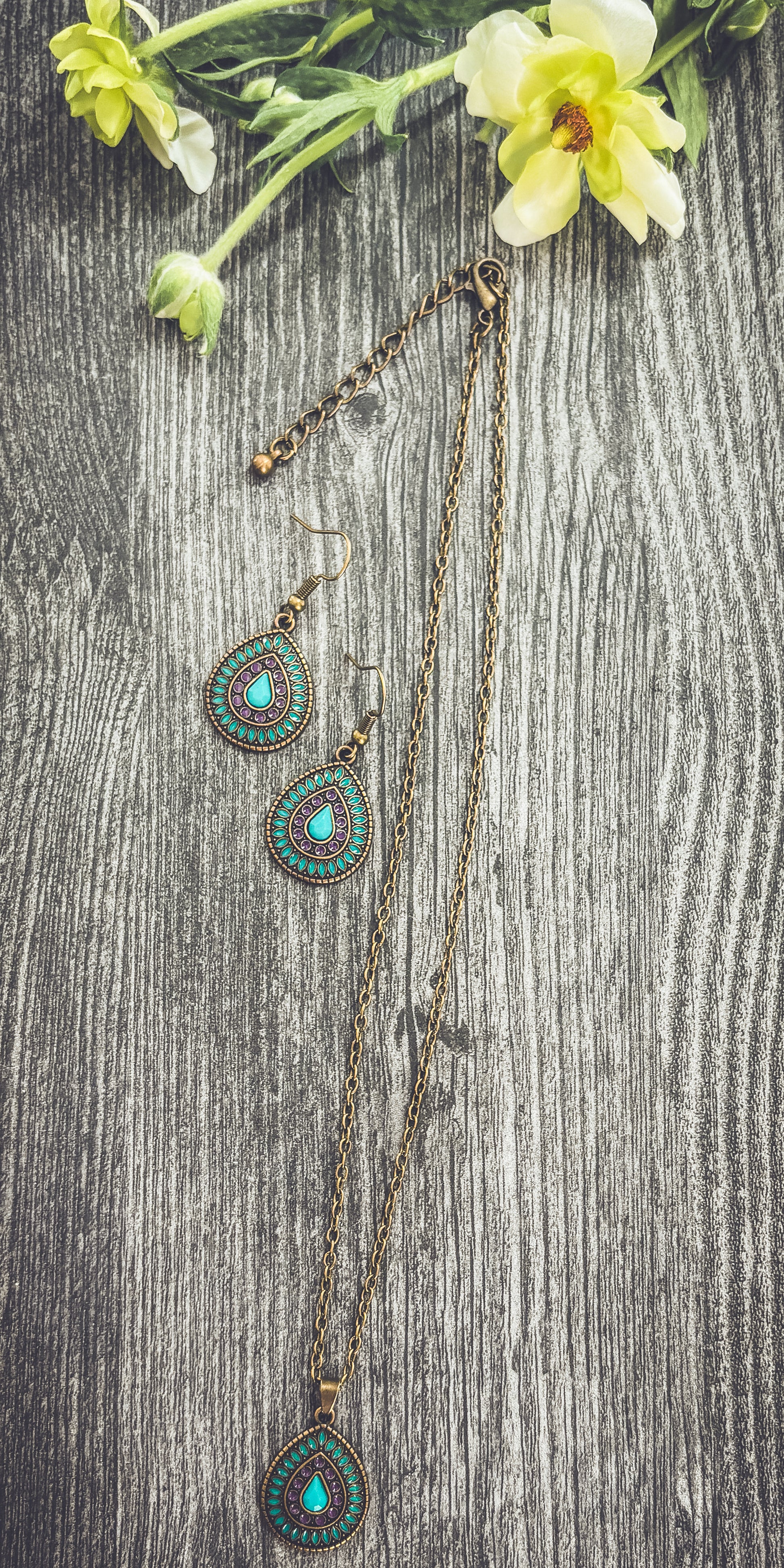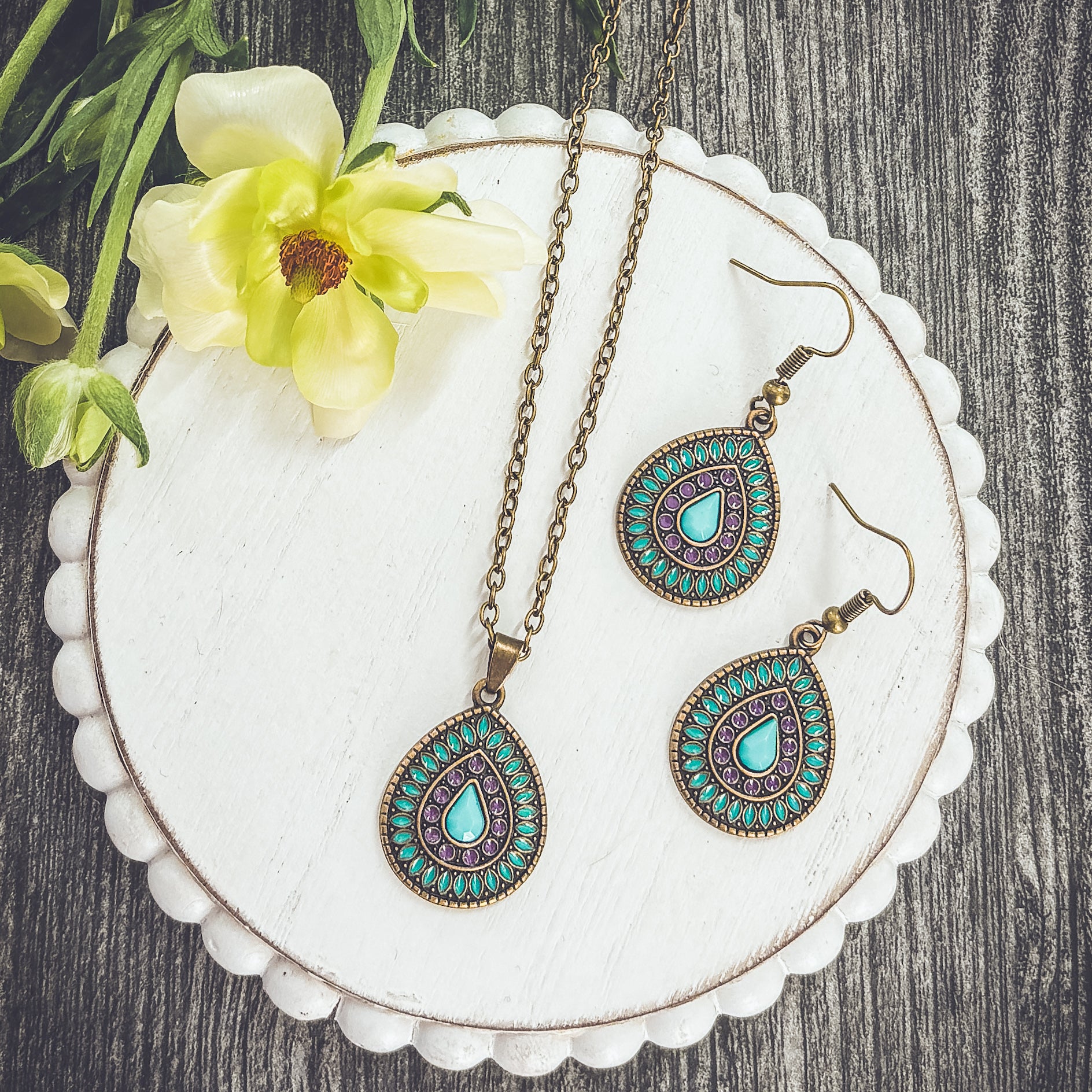 Beautiful Boho Turquoise and Purple Necklace and Earring Set