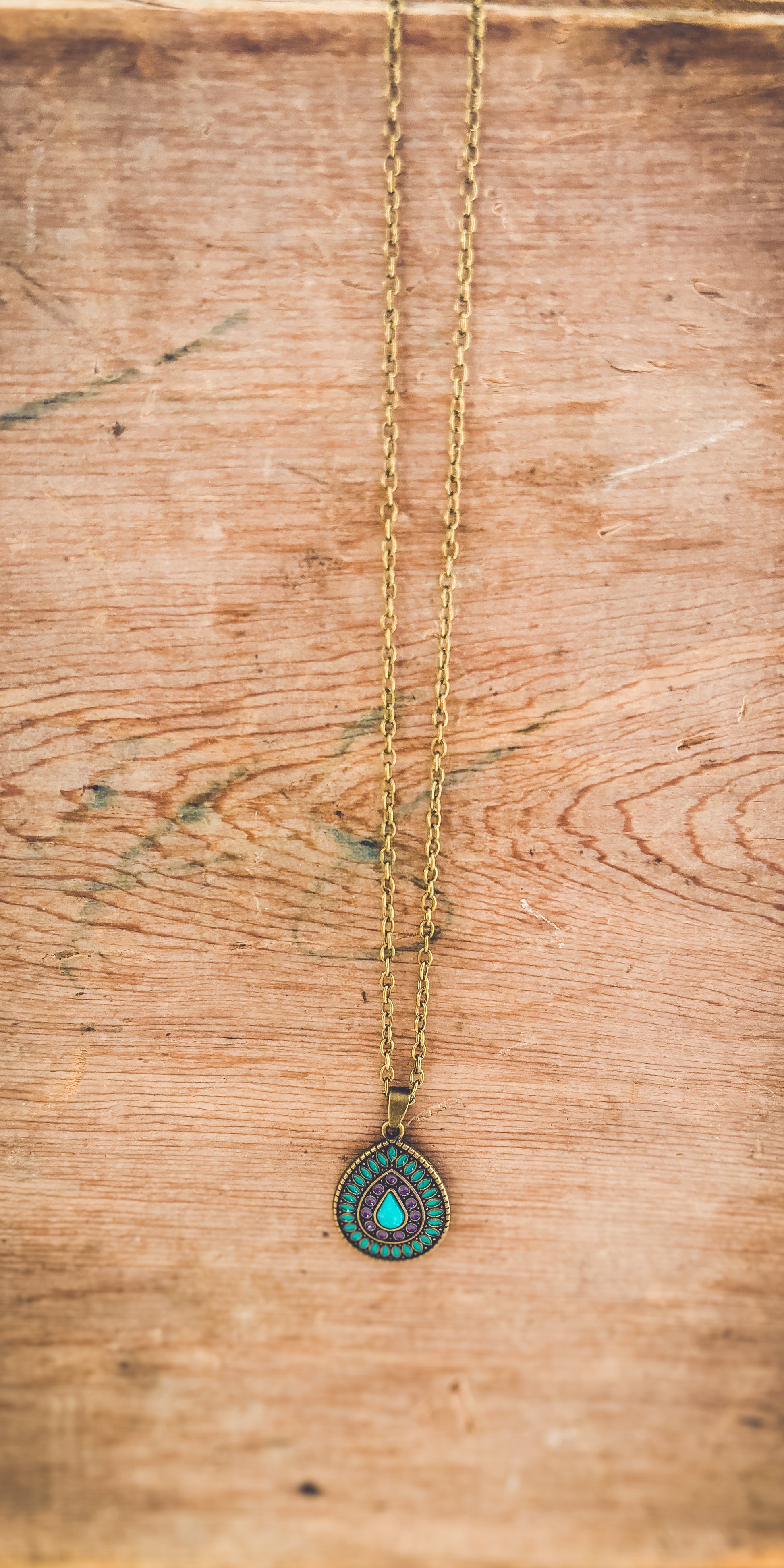 Embrace your inner boho spirit with this Beautiful Boho Turquoise and Purple Necklace and Earring Set. The unique combination of turquoise and purple creates a stunning statement piece, perfect for any bohemian-inspired outfit or occasion. 19 inch chain
