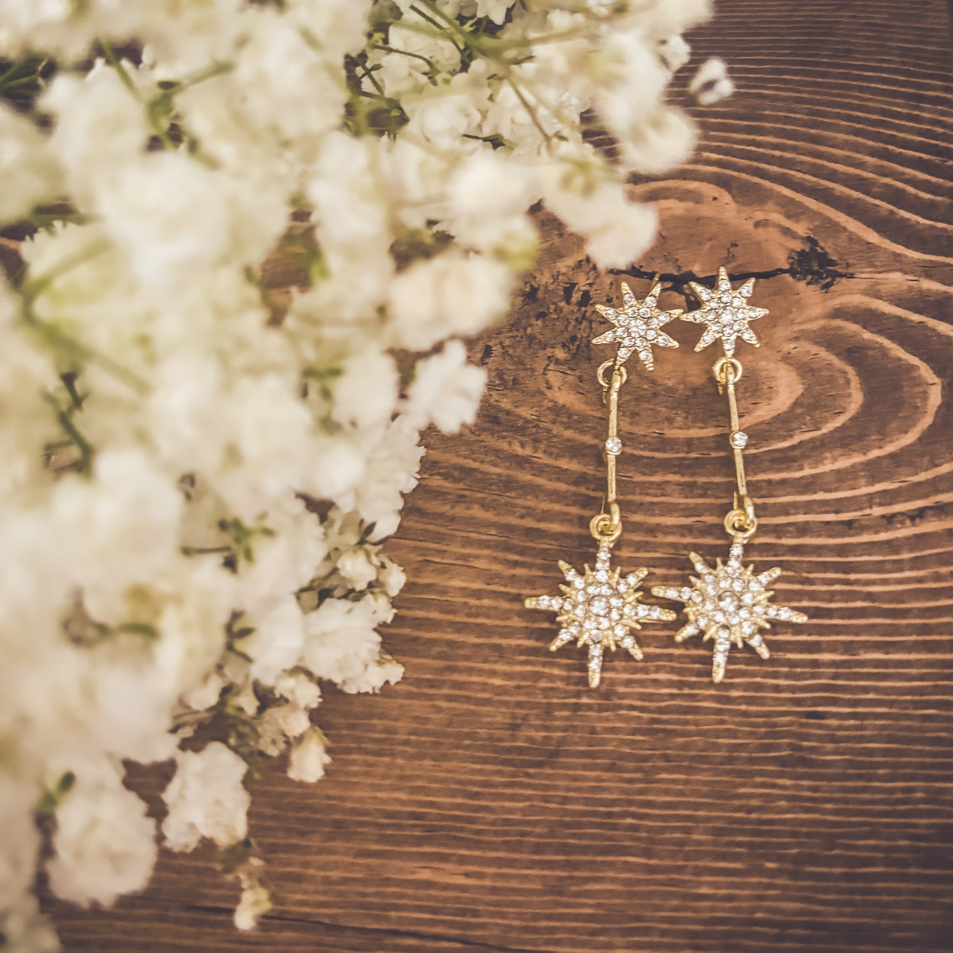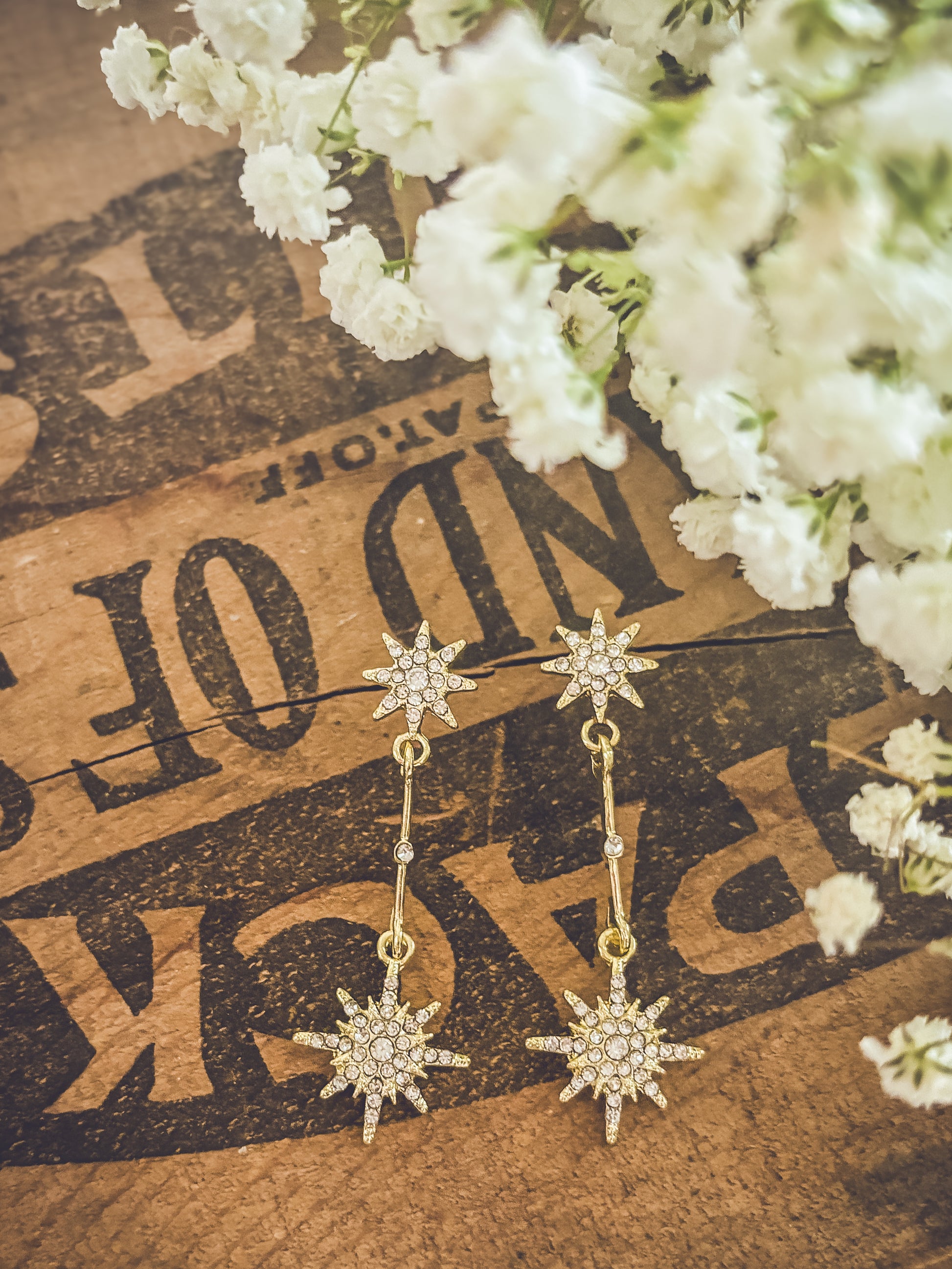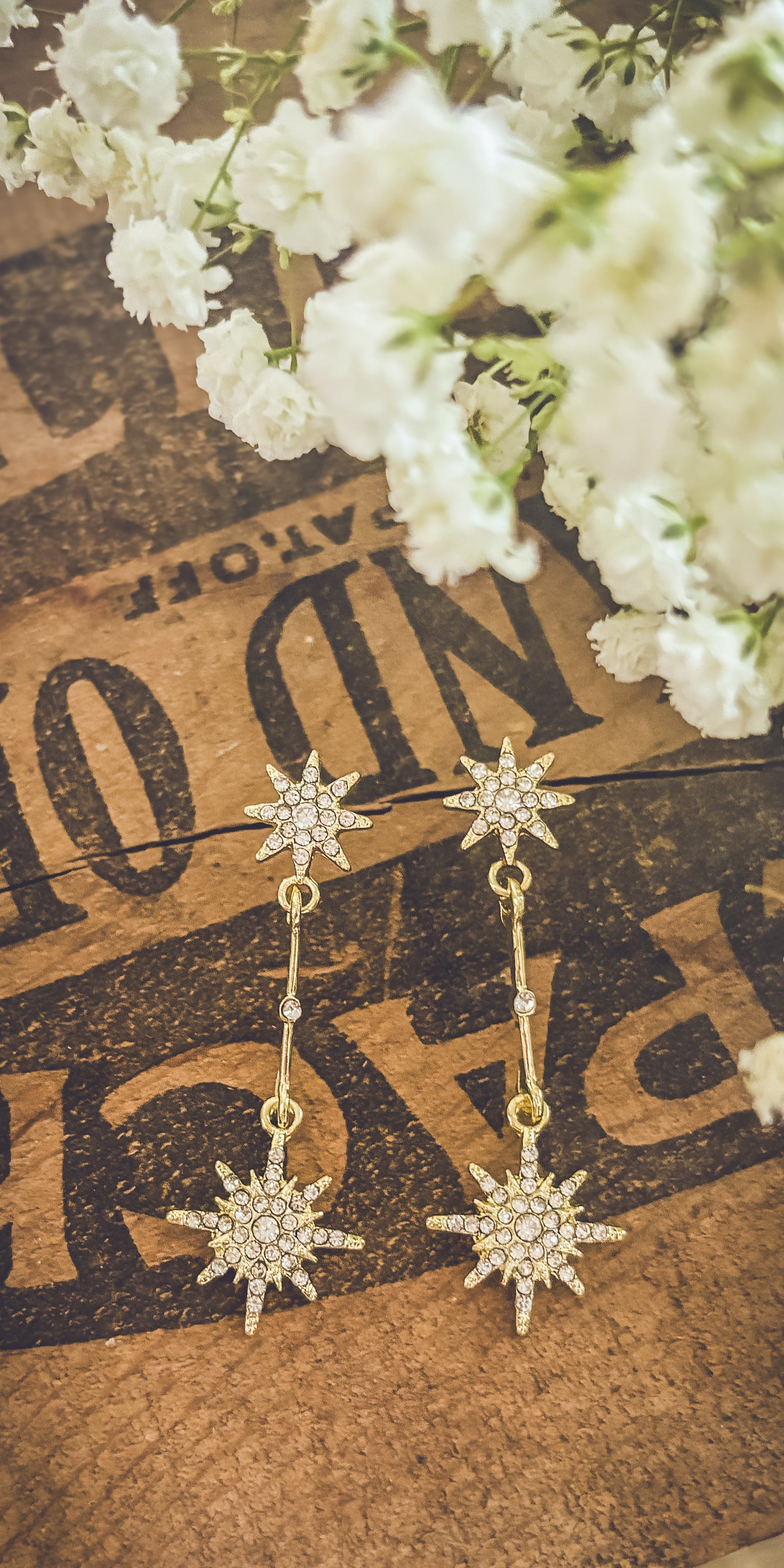 Illuminate your style with our beautiful celestial earrings. Crafted with precision, these earrings capture the magic of the starry night, offering a unique and elegant accessory that adds a celestial touch to any ensemble. 2.3 inches in length
