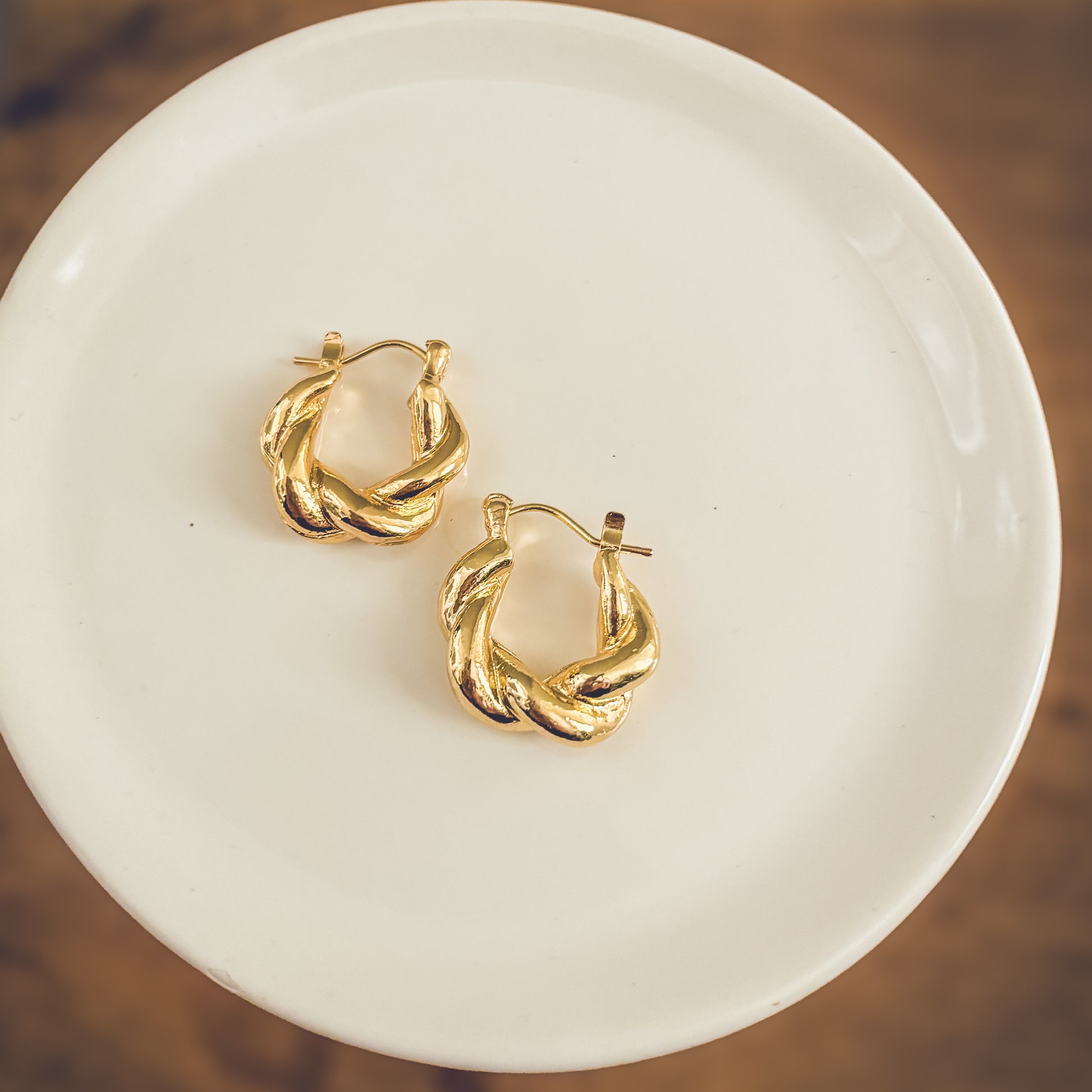 The Beautiful Chunky Gold Twist Earrings are the perfect everyday accessory. They go with literally everything are nickel sized.