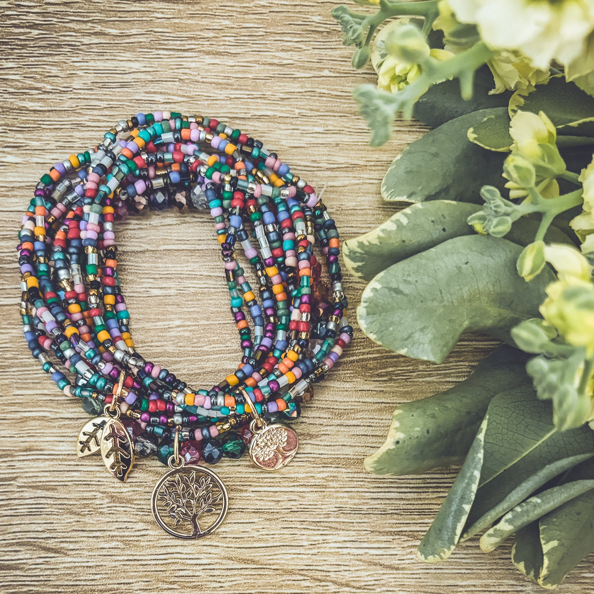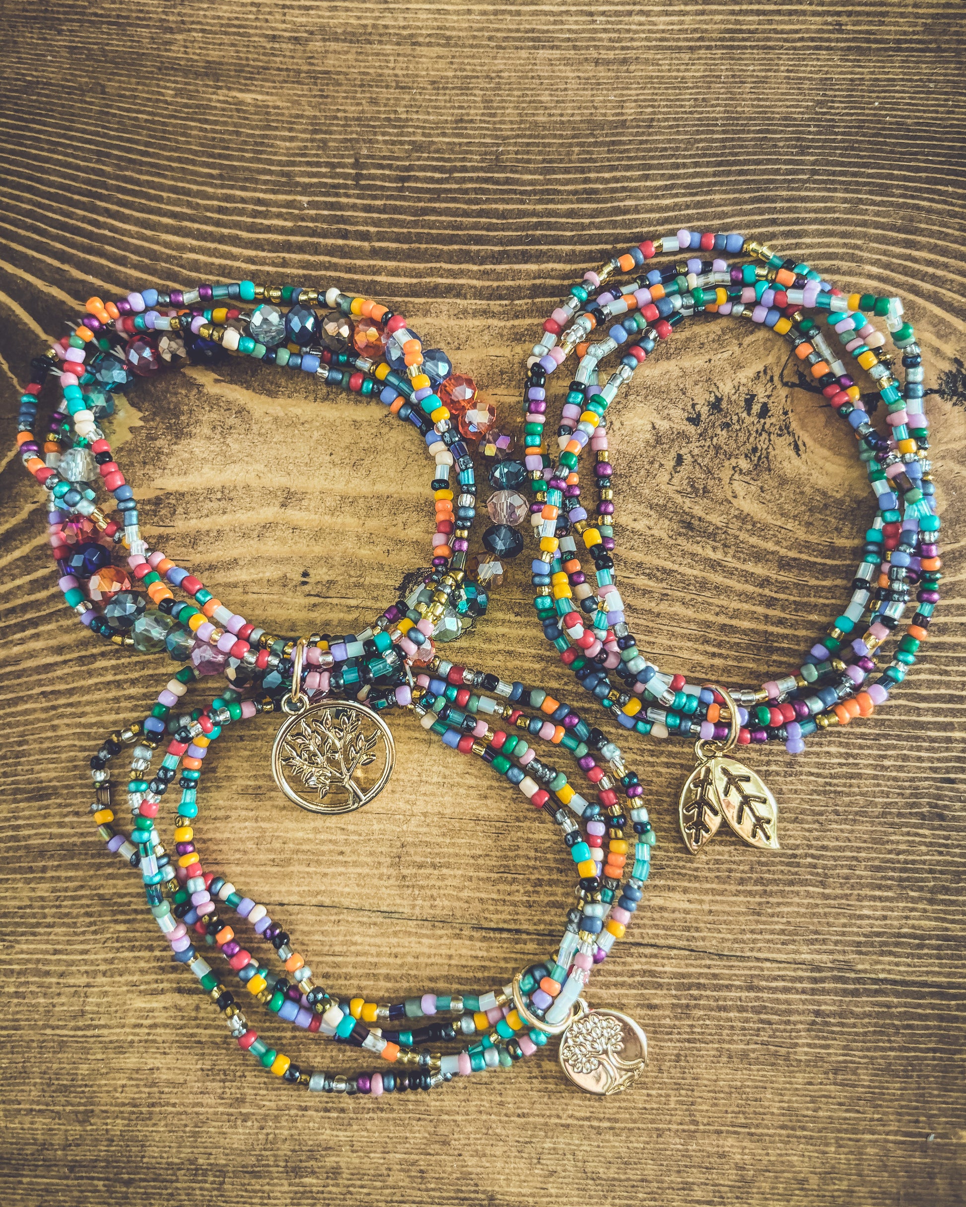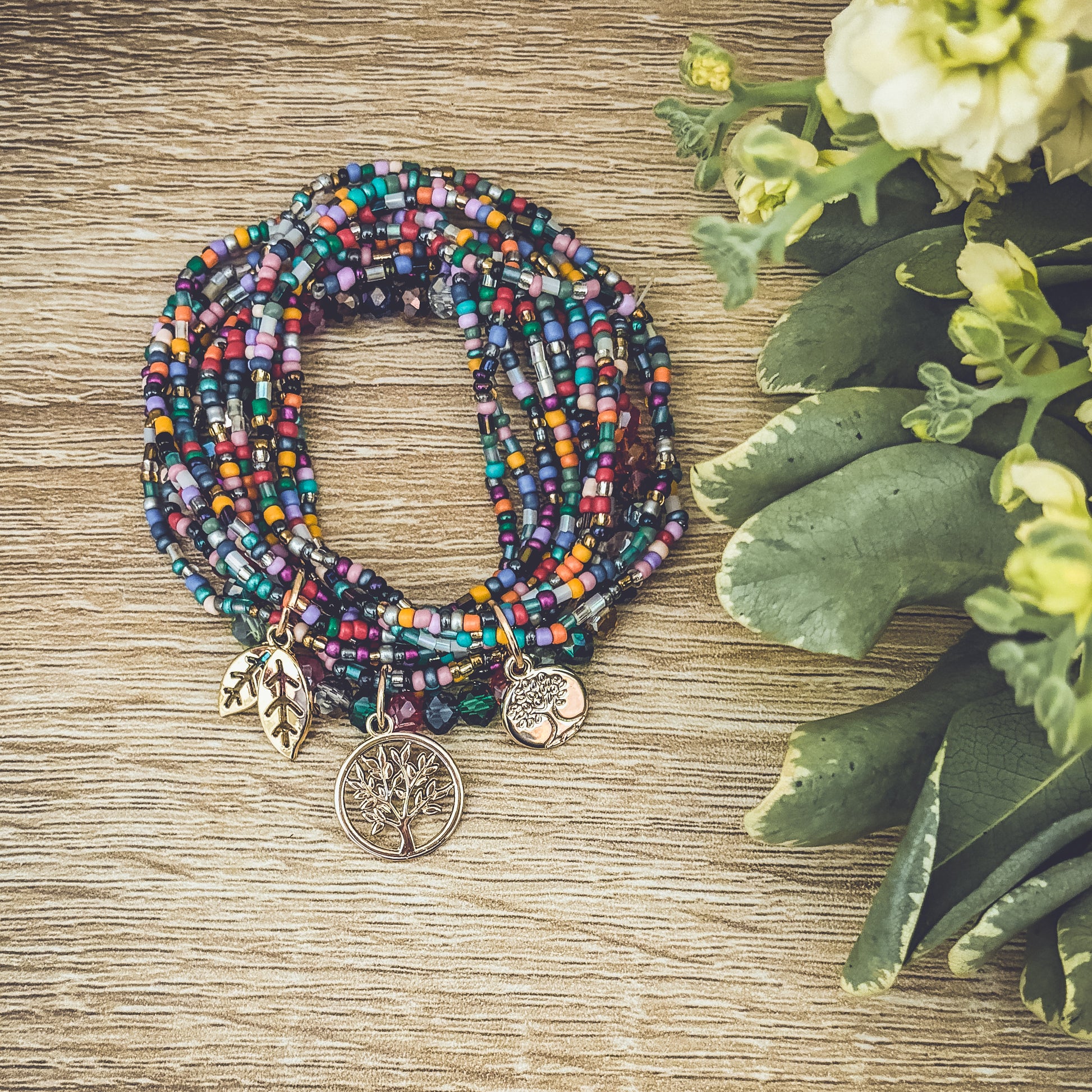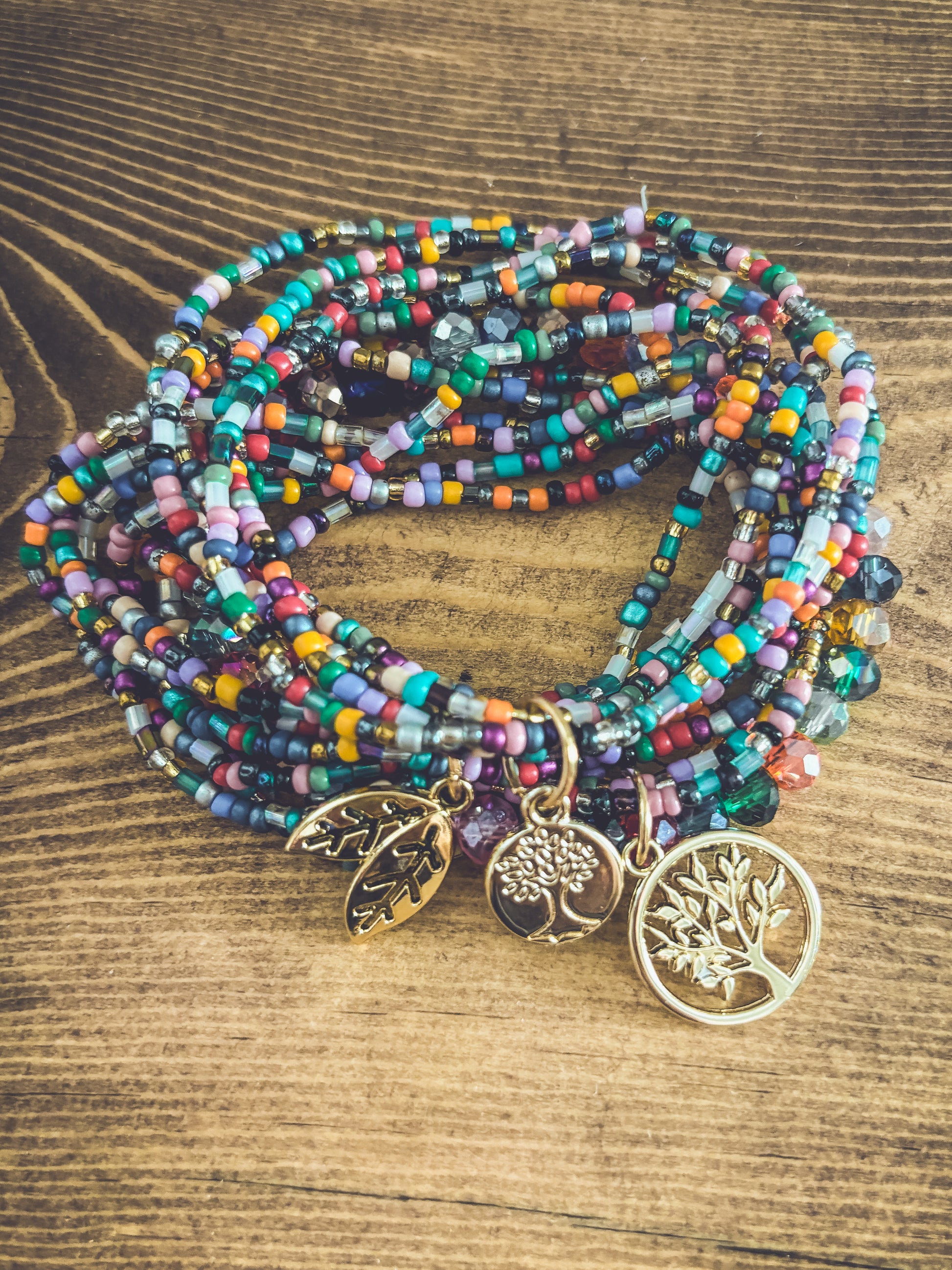 Embrace the beauty of nature with this Beautiful Colorful Tree of Life Stacking Bracelet set. 3 sets can be worn together or separately. The striking and detailed design features a tree of life charm, a symbol of growth and connection to the earth. The colorful beads accents add a touch of fun and boho freedom to the piece, making it perfect for many occasions.