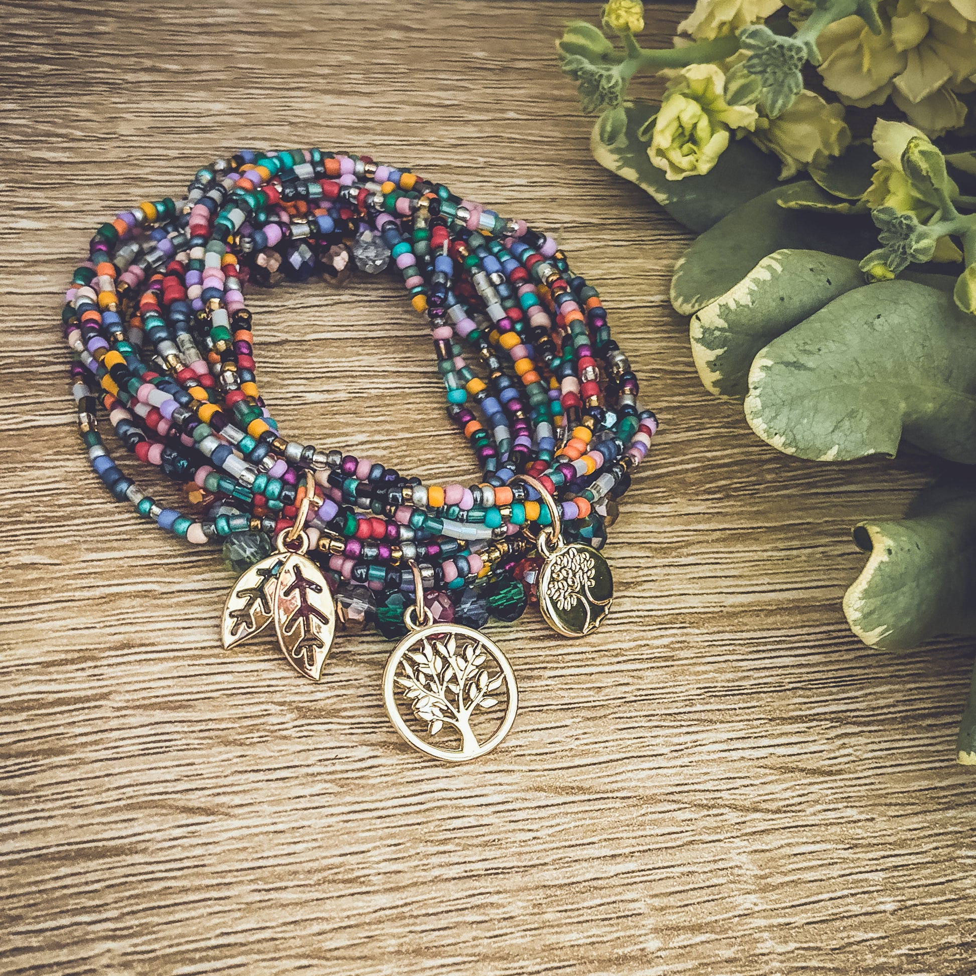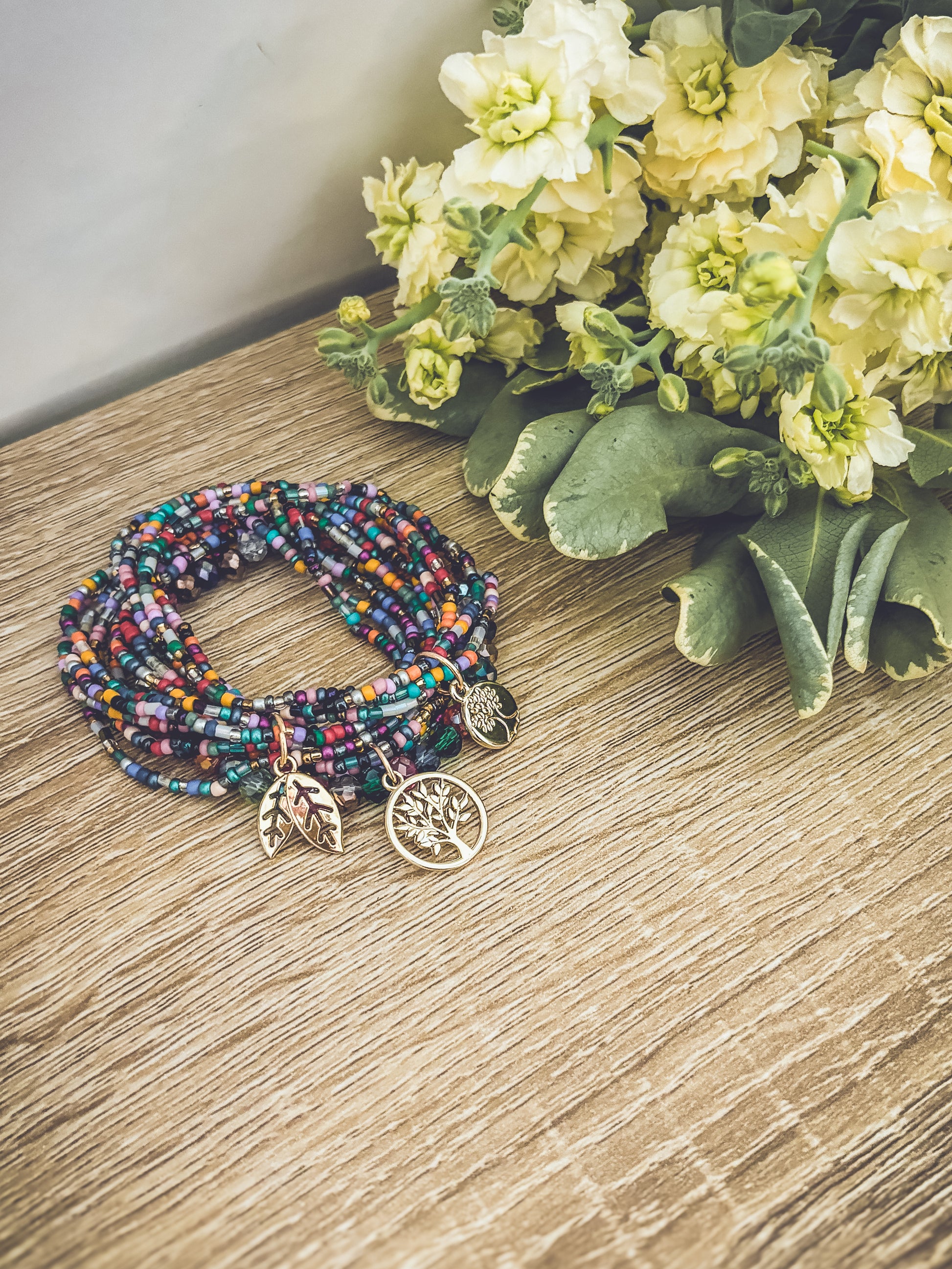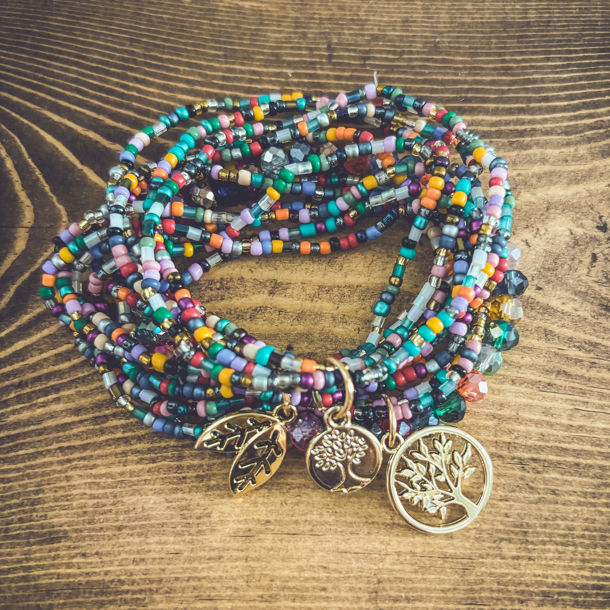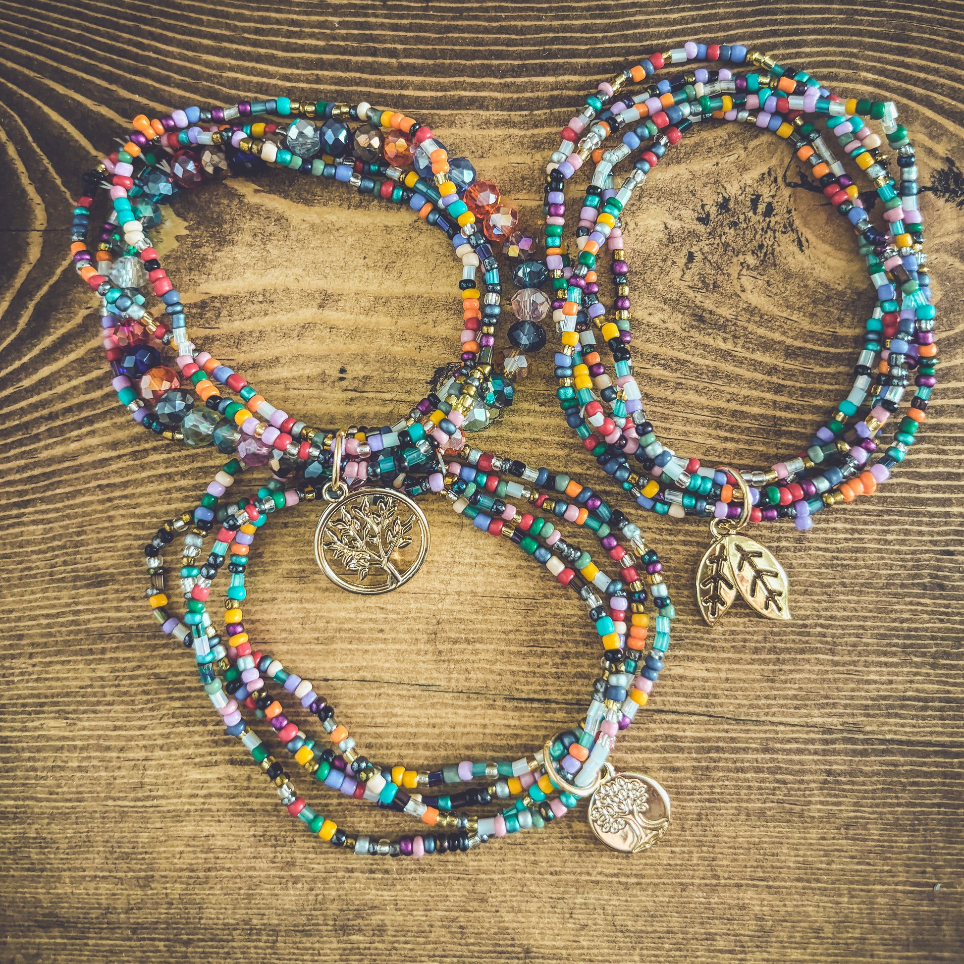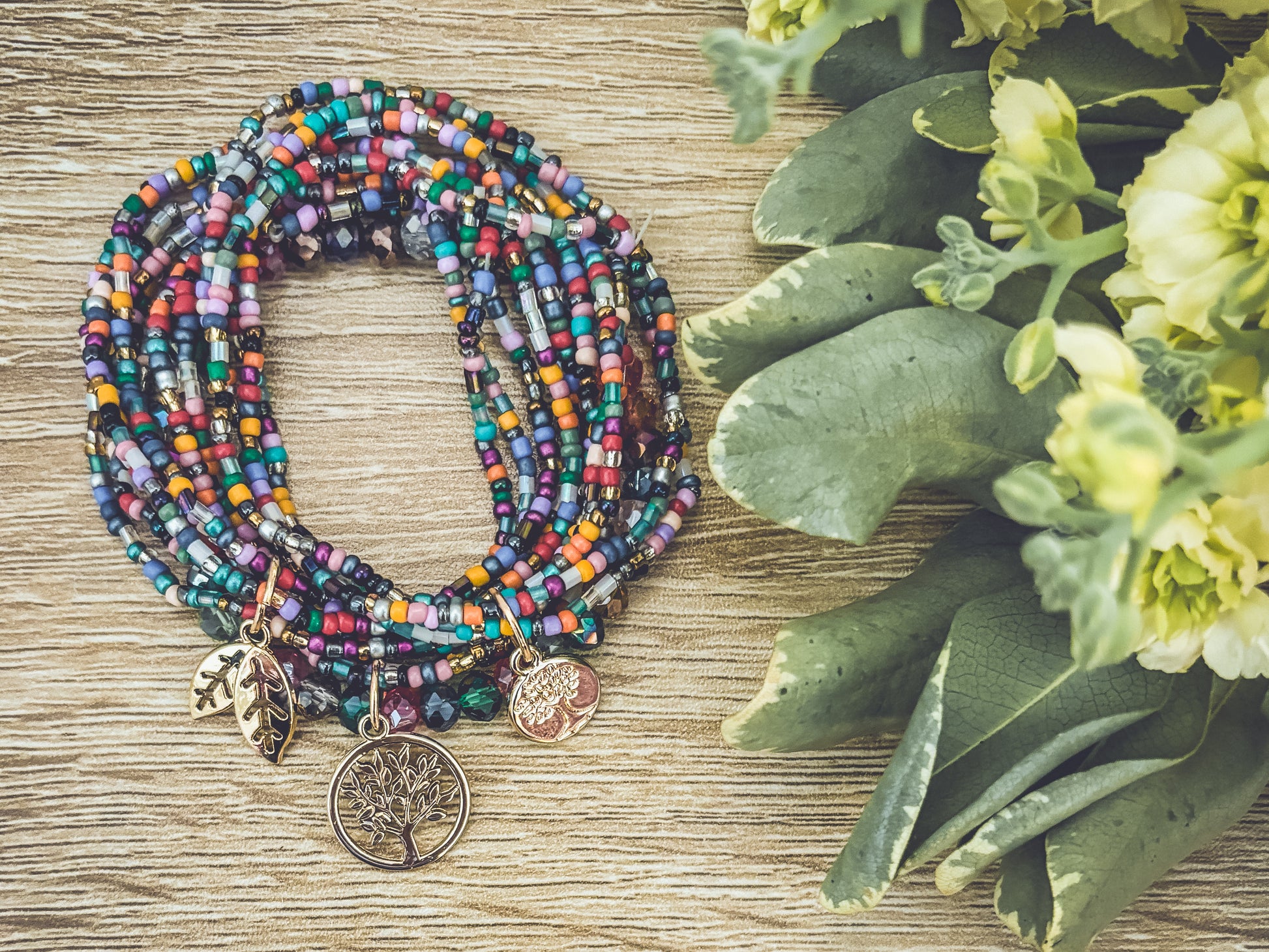 Embrace the beauty of nature with this Beautiful Colorful Tree of Life Stacking Bracelet set. 3 sets can be worn together or separately. The striking and detailed design features a tree of life charm, a symbol of growth and connection to the earth. The colorful beads accents add a touch of fun and boho freedom to the piece, making it perfect for many occasions.
