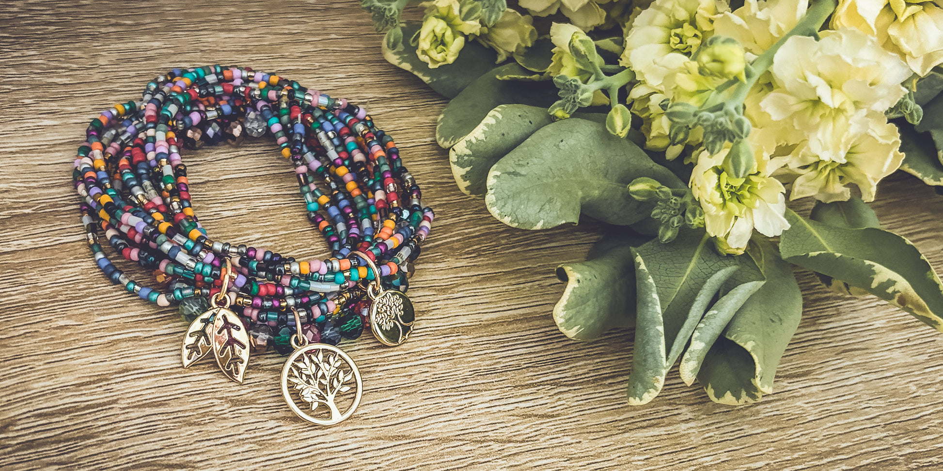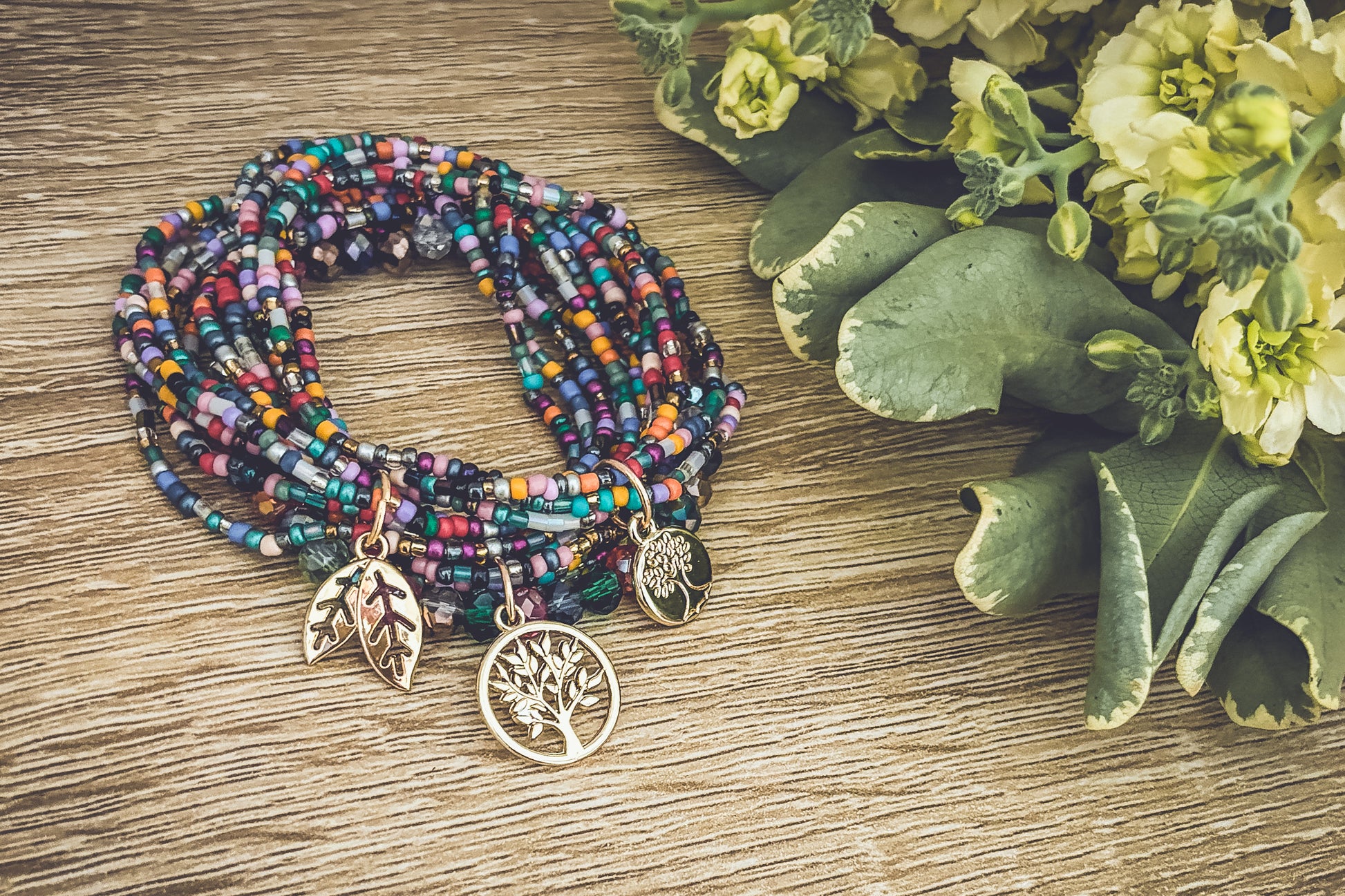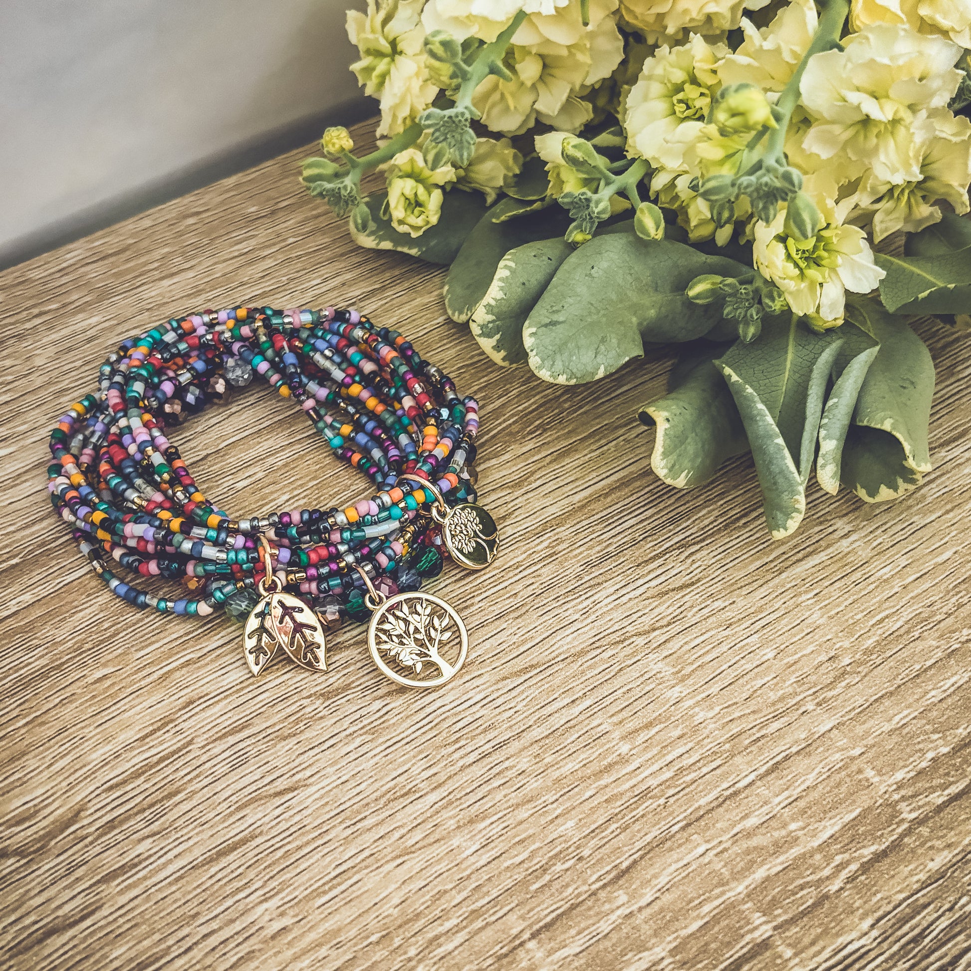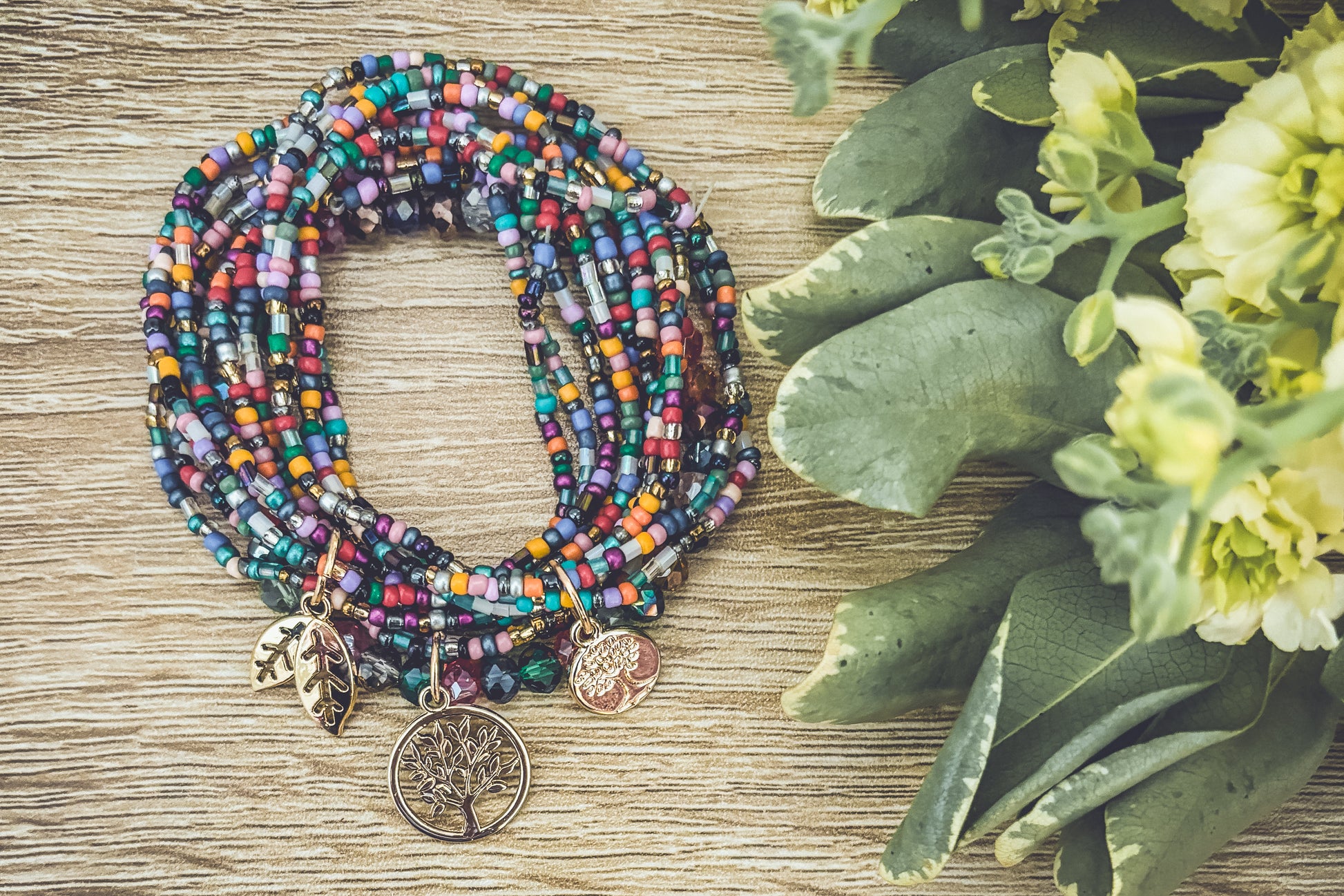 Embrace the beauty of nature with this Beautiful Colorful Tree of Life Stacking Bracelet set. 3 sets can be worn together or separately. The striking and detailed design features a tree of life charm, a symbol of growth and connection to the earth. The colorful beads accents add a touch of fun and boho freedom to the piece, making it perfect for many occasions.