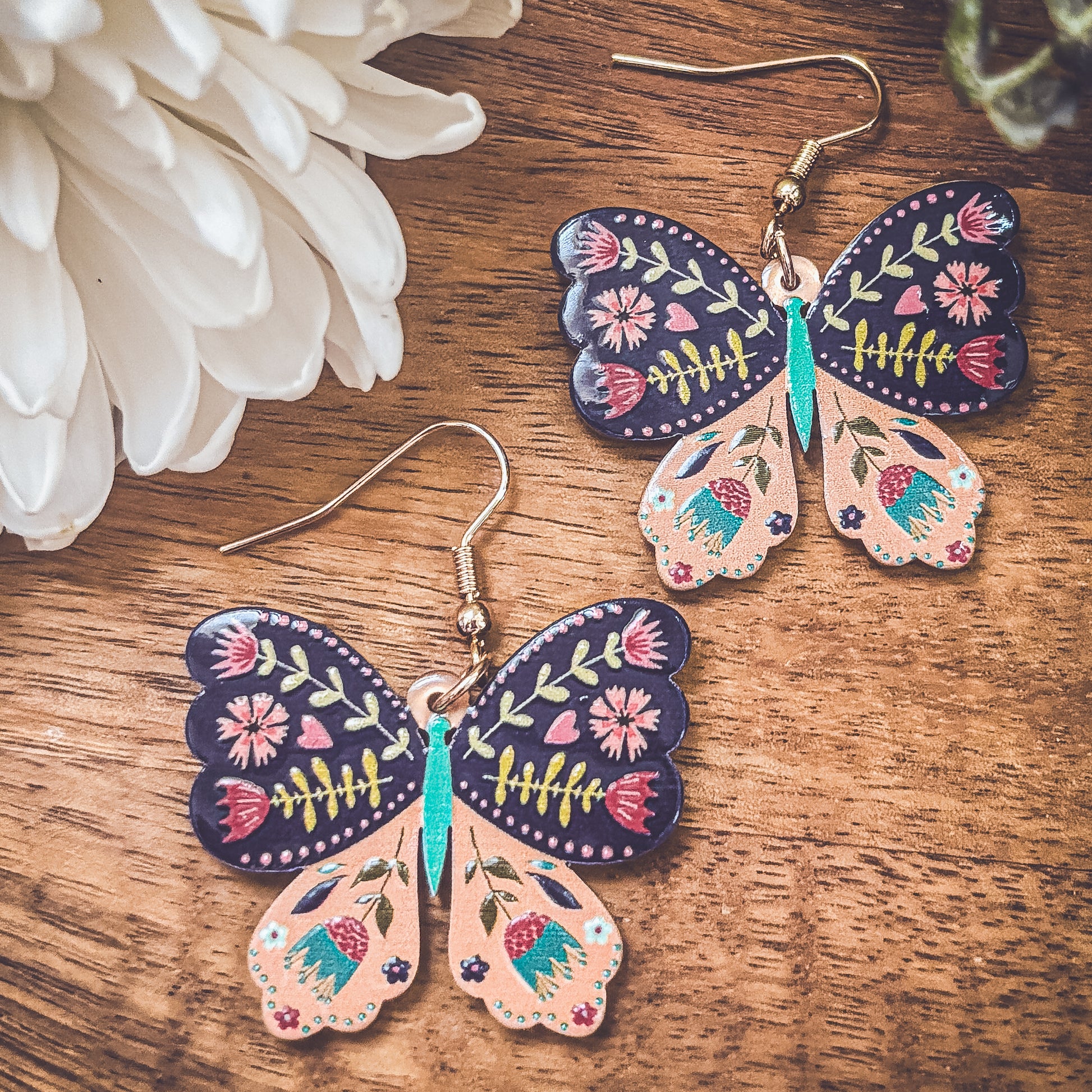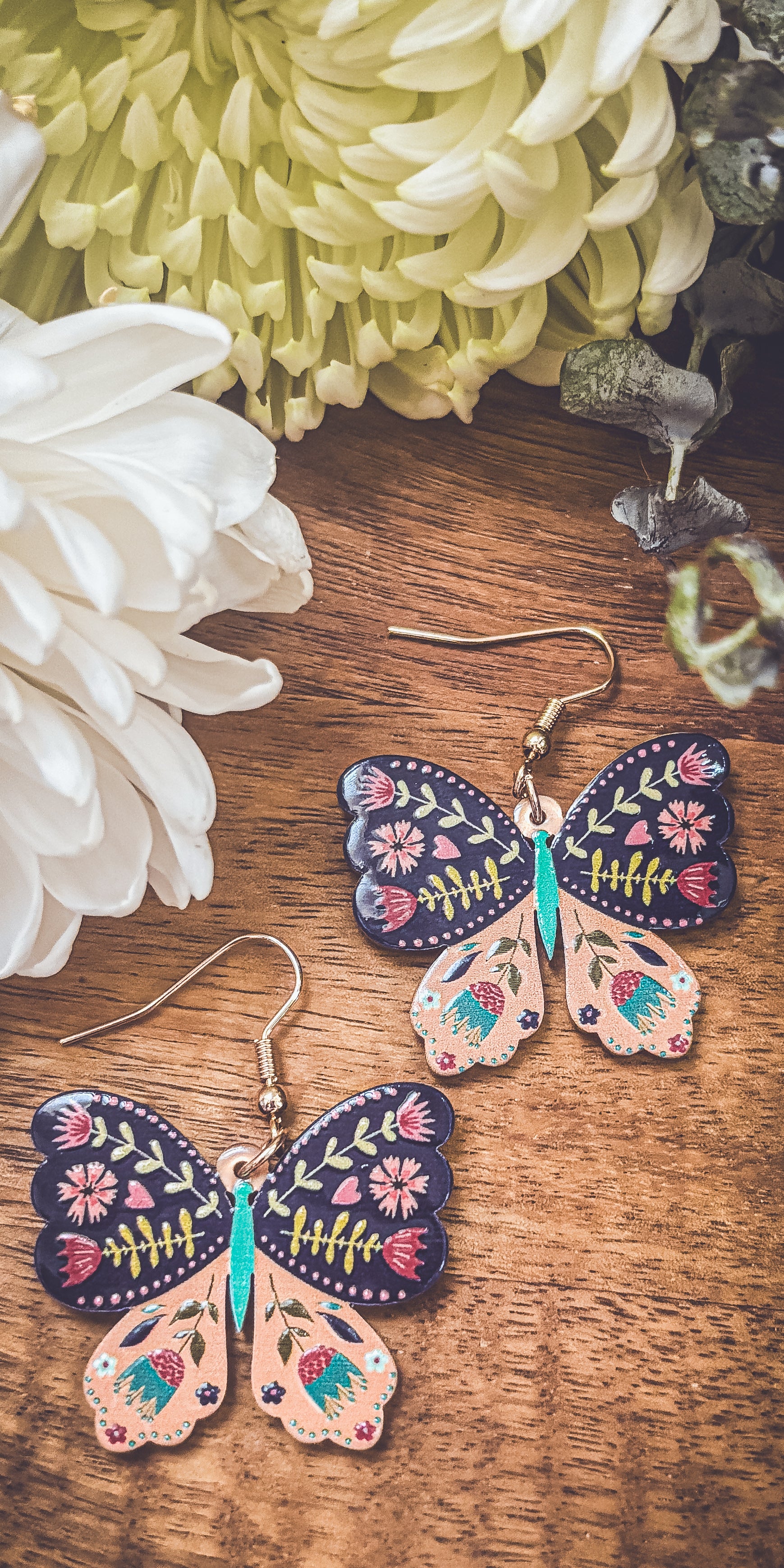 Bright, cheerful, and full of whimsy—these colorful butterfly earrings add a playful pop to any outfit. Lightweight and fun for everyday wear or gifting. 1.2 inches.