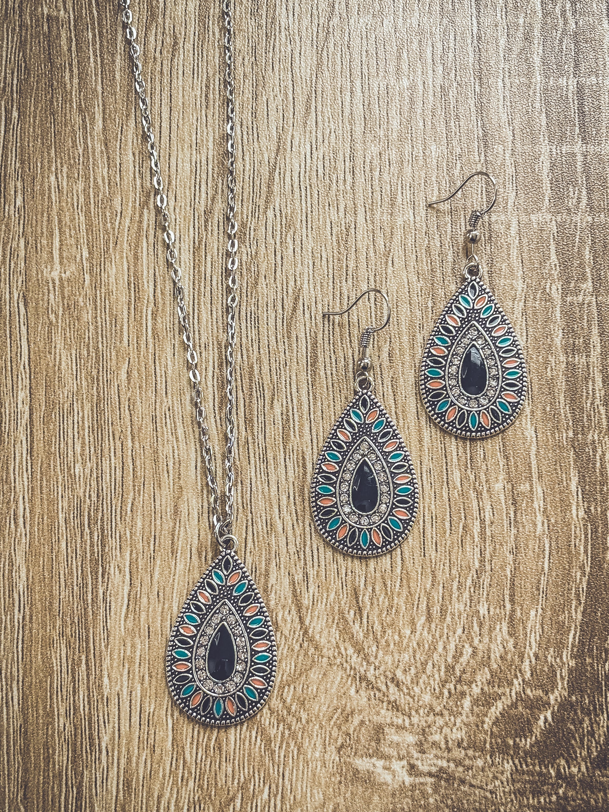 Beautiful Feminine Black and Crystal Necklace and Earrings Set
