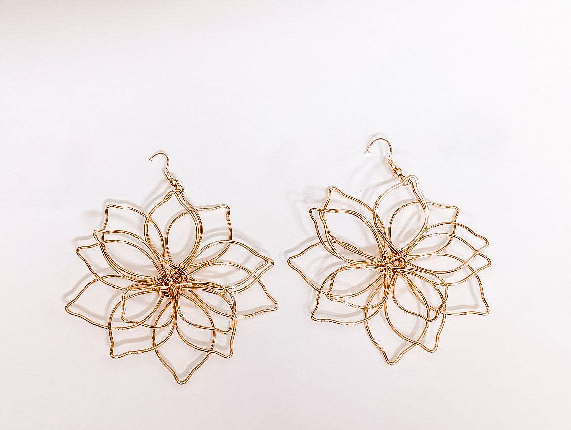 Illuminate your look with our Beautiful Gold Flower Earrings. These exquisite earrings feature delicate floral designs, radiating elegance and grace with every wear. Perfect for adding a touch of nature-inspired beauty to any outfit. Statement earrings.