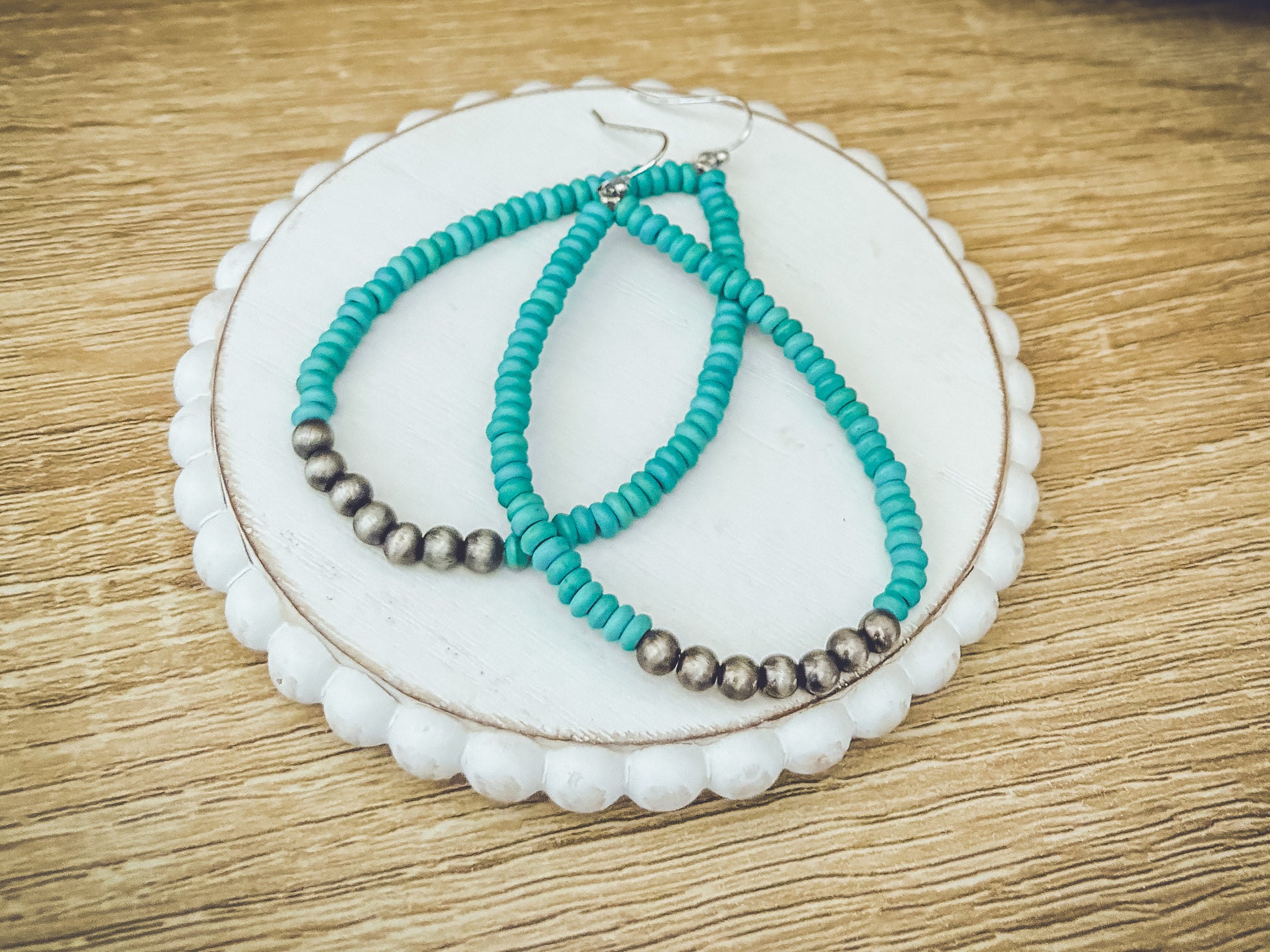 Elegant Navajo Pearl Earrings: Timeless beauty meets Native American inspiration. Exquisite design with lustrous faux pearls, adding a touch of southwest charm to any ensemble. Measure 2.5 inches in length.