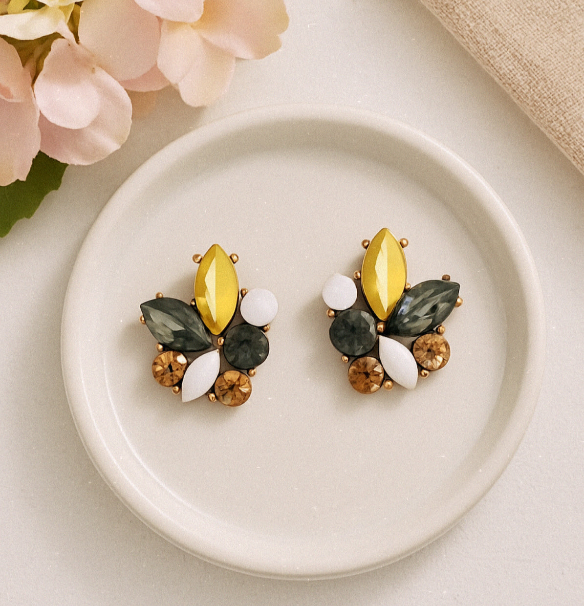 Beautiful Neutral Crystal Statement Earrings