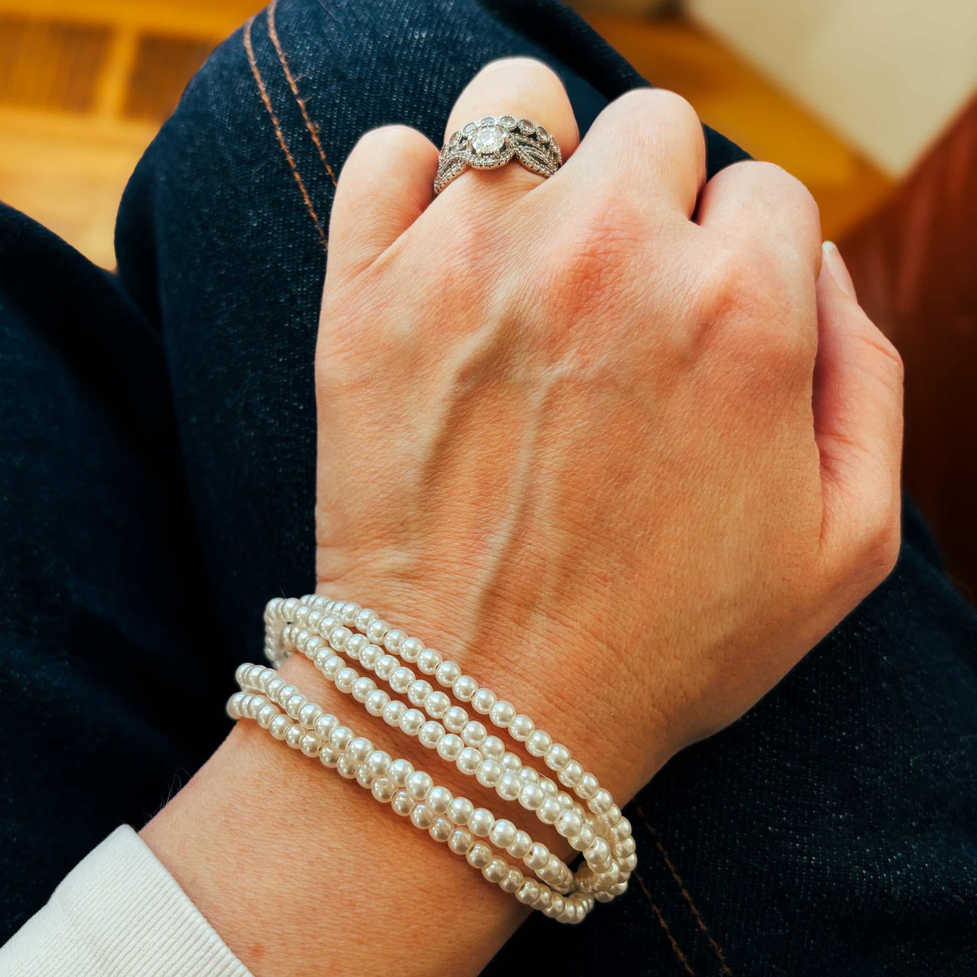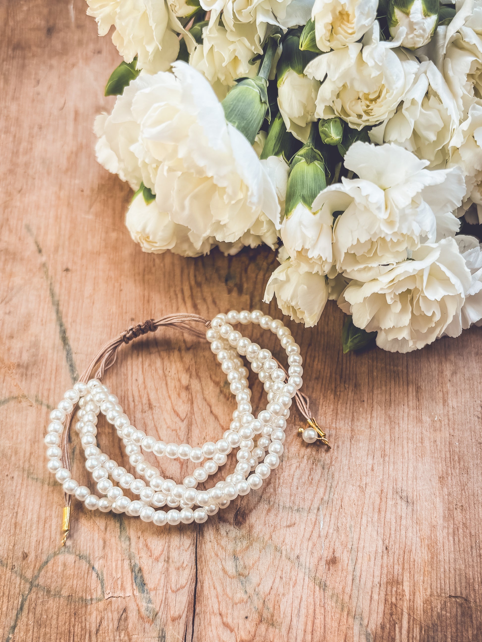 Enhance your style with our Beautiful Pearl Bracelets. Crafted with care, these delicate pieces add a touch of soft, feminine charm to any ensemble. Adjustable in size.