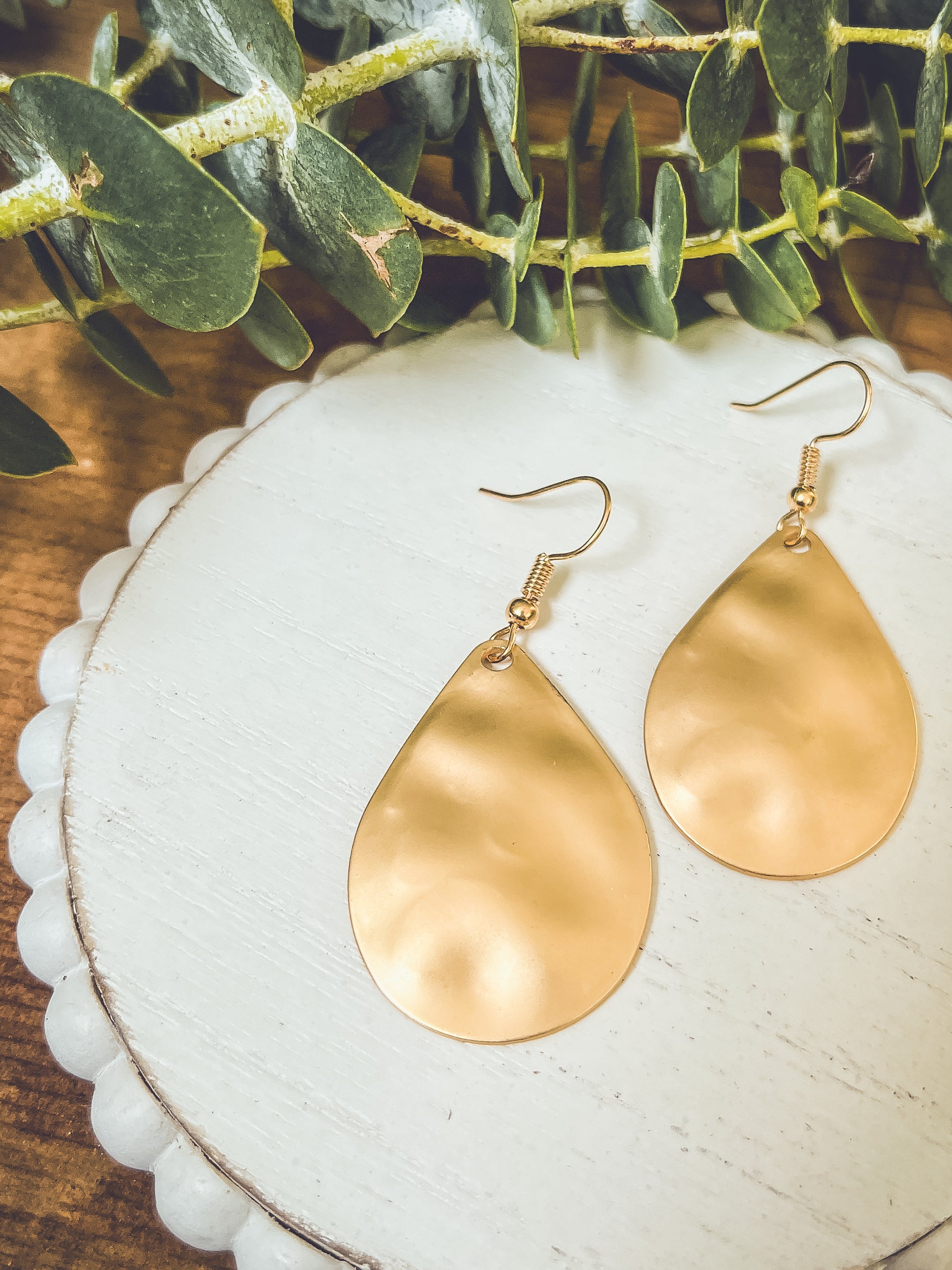 Elevate your elegance with our stunning hammered gold drop earrings. Crafted to perfection, these exquisite pieces seamlessly blend modern style with timeless allure, making them the perfect accessory for any occasion.