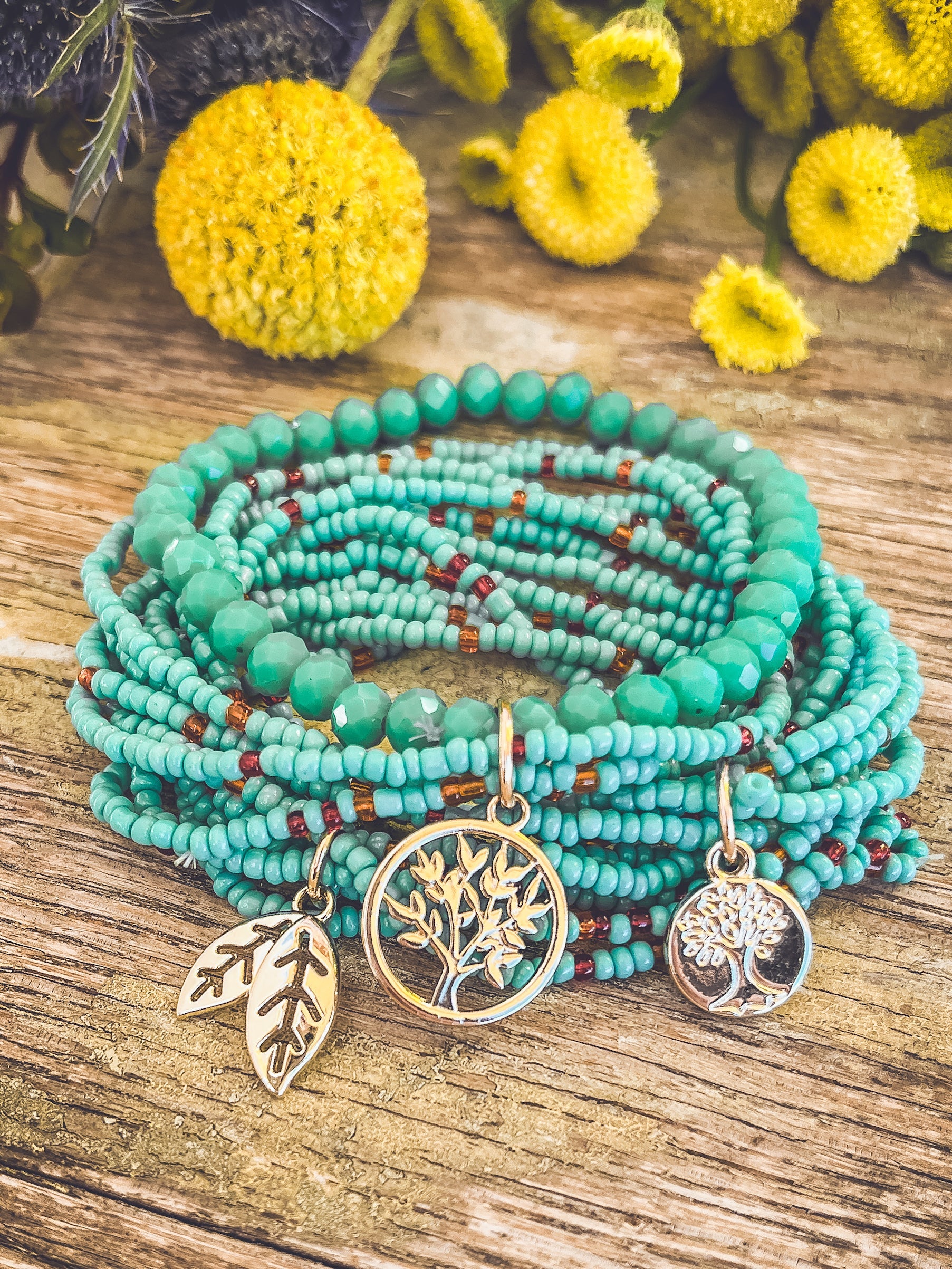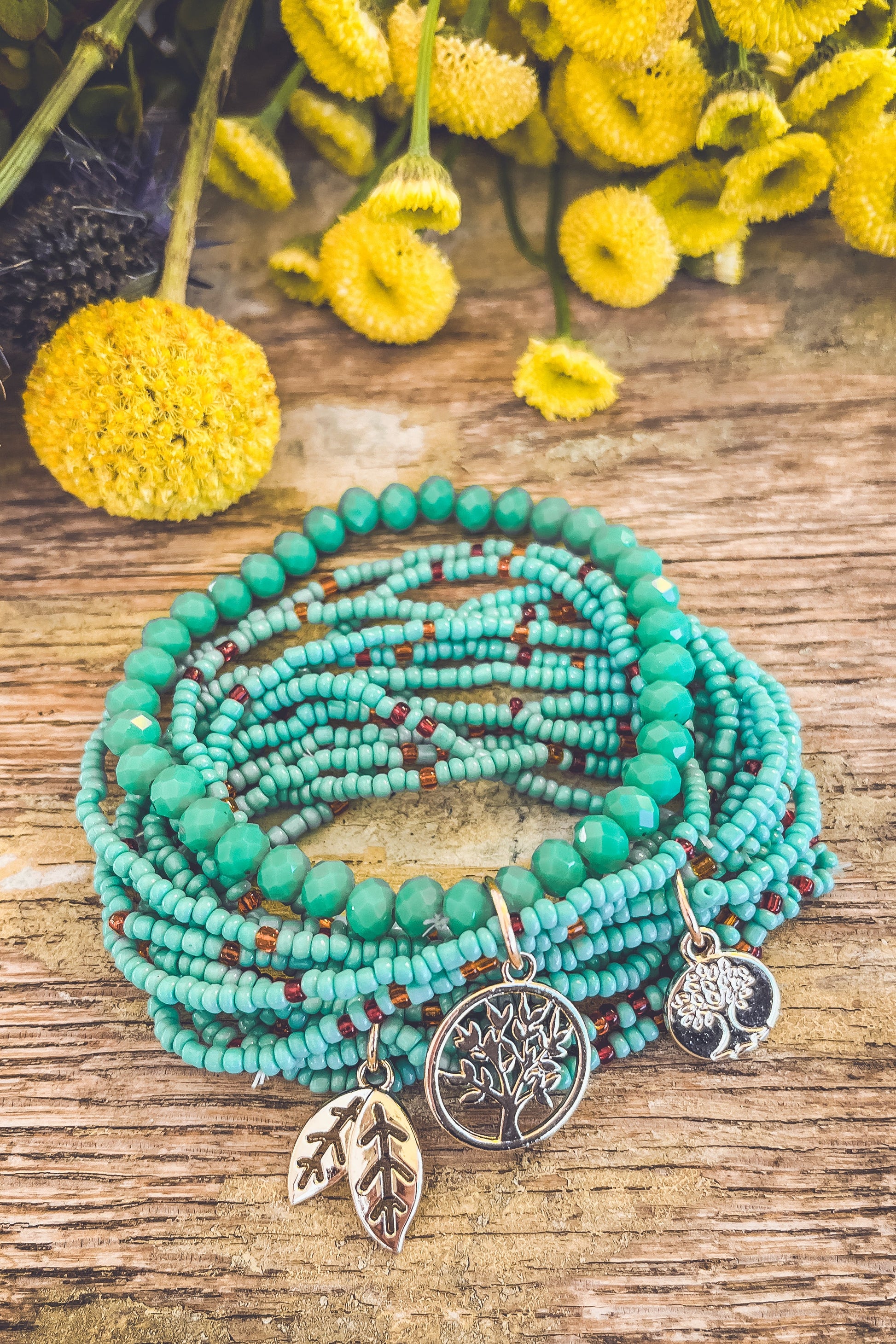Elevate your style with our Turquoise Tree of Life Stacking Bracelets. These beautiful pieces bring a touch of nature's beauty to your wrist. Mix and match for a stunning, boho-chic look.