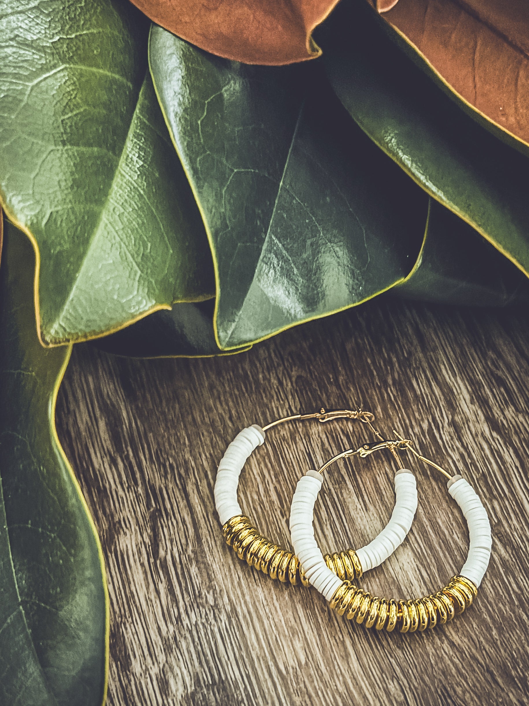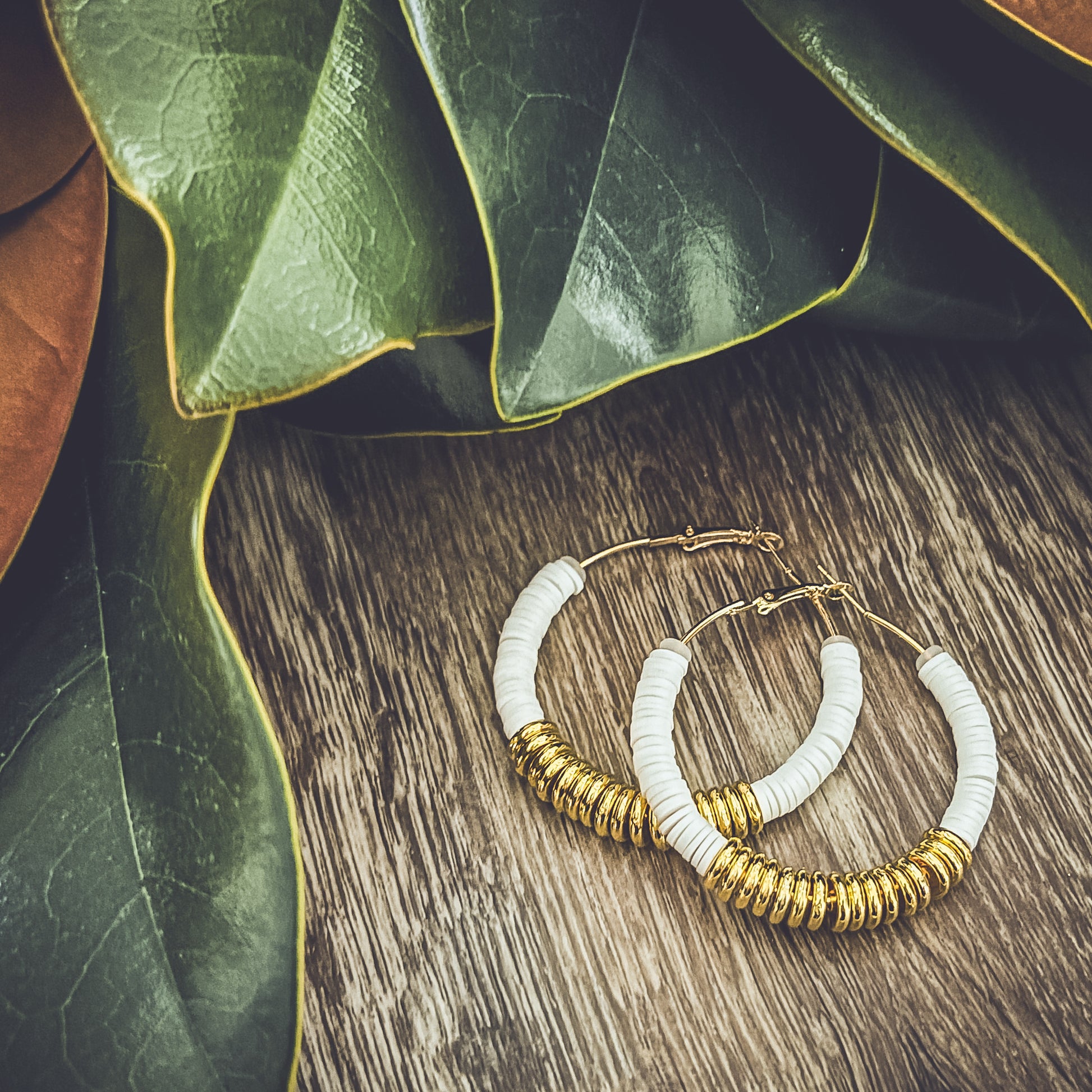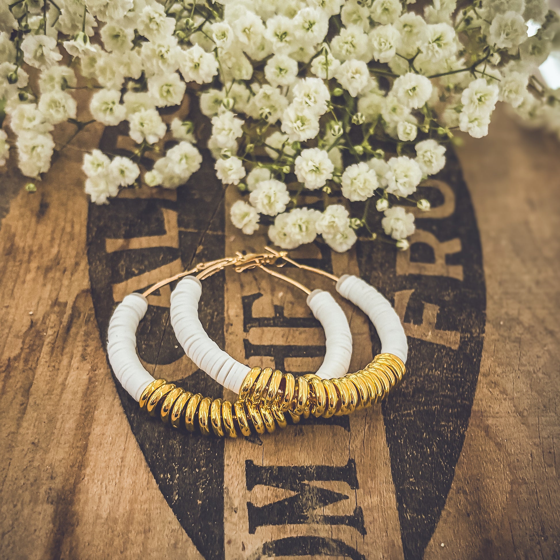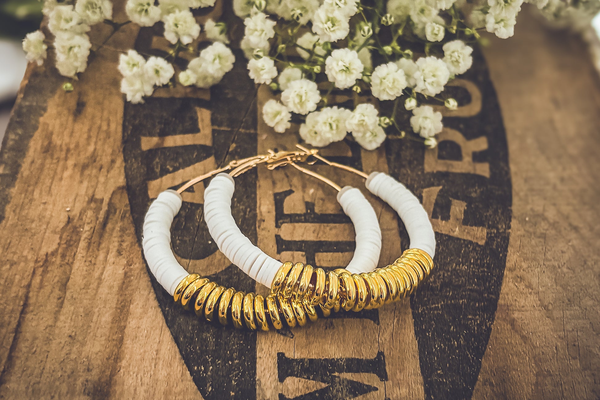 Beautiful White and Gold Clay Hoops