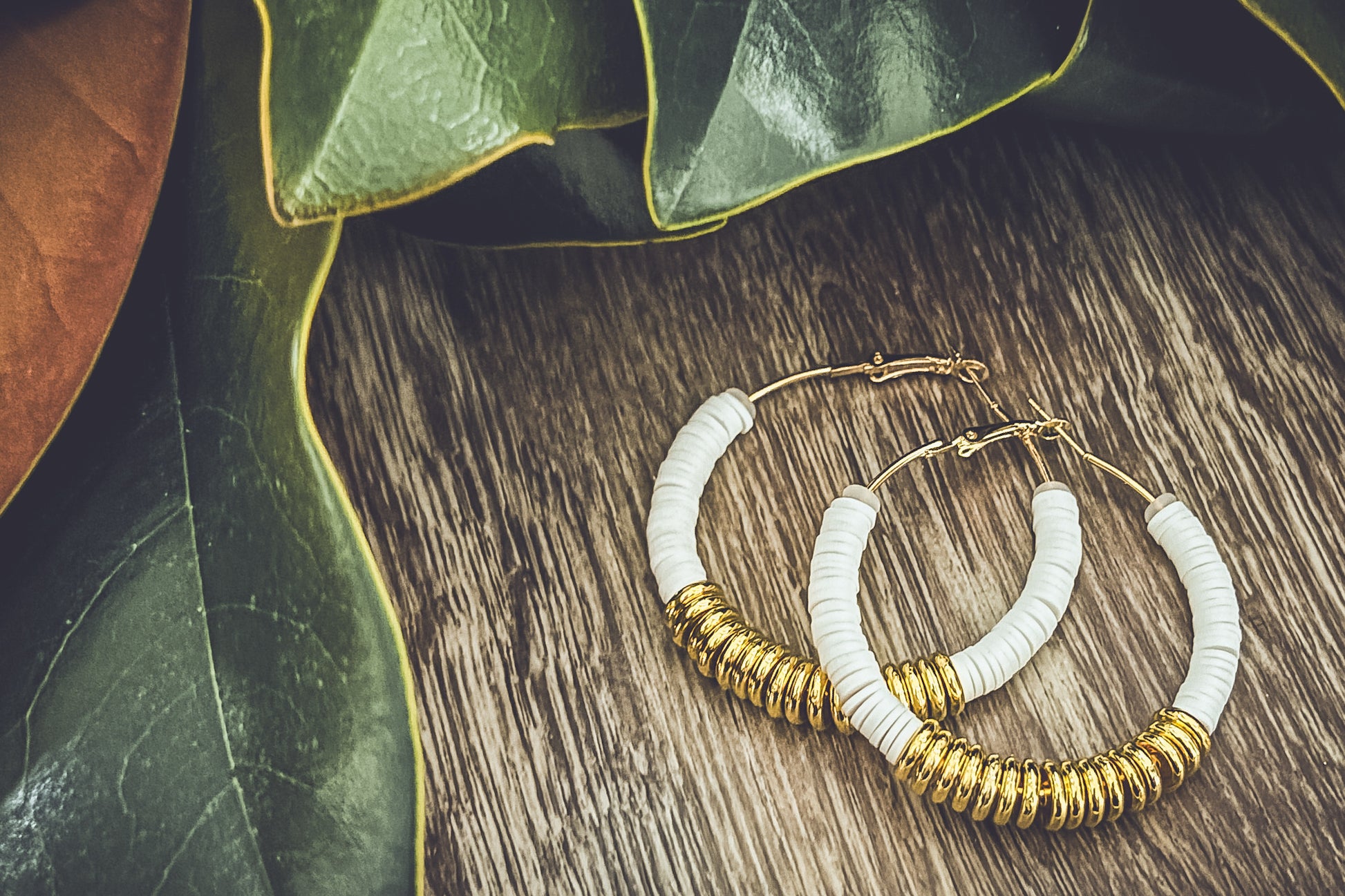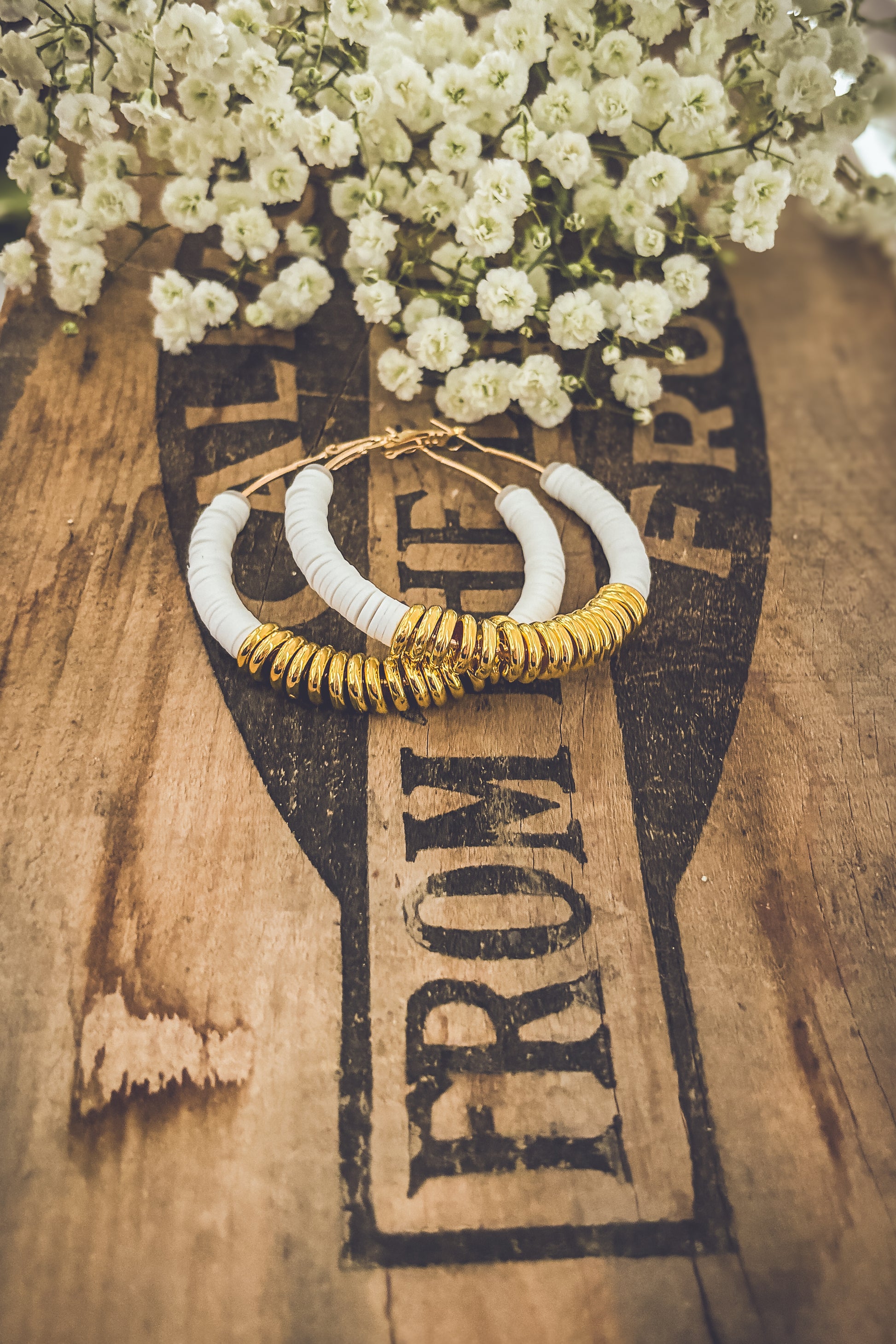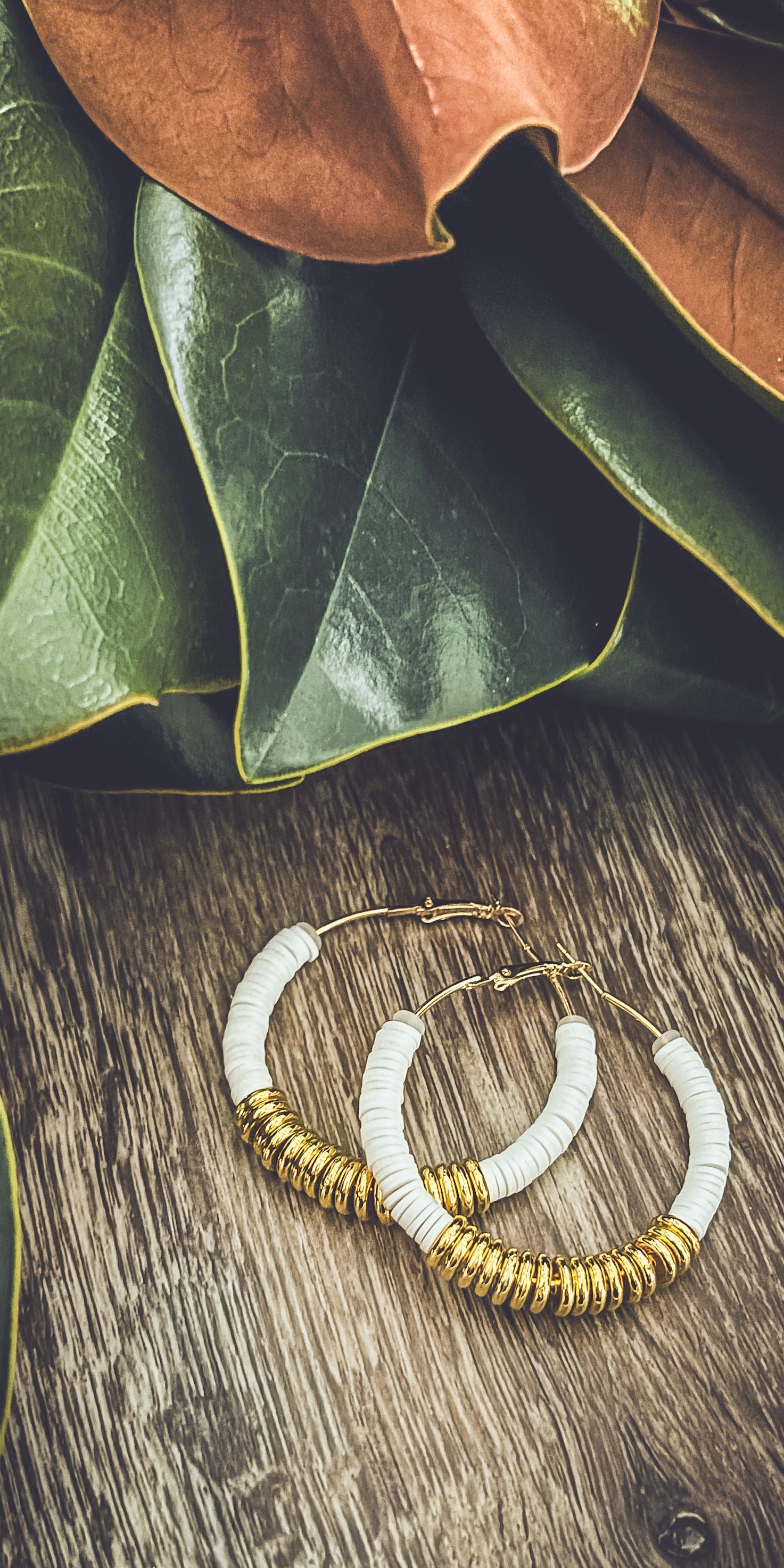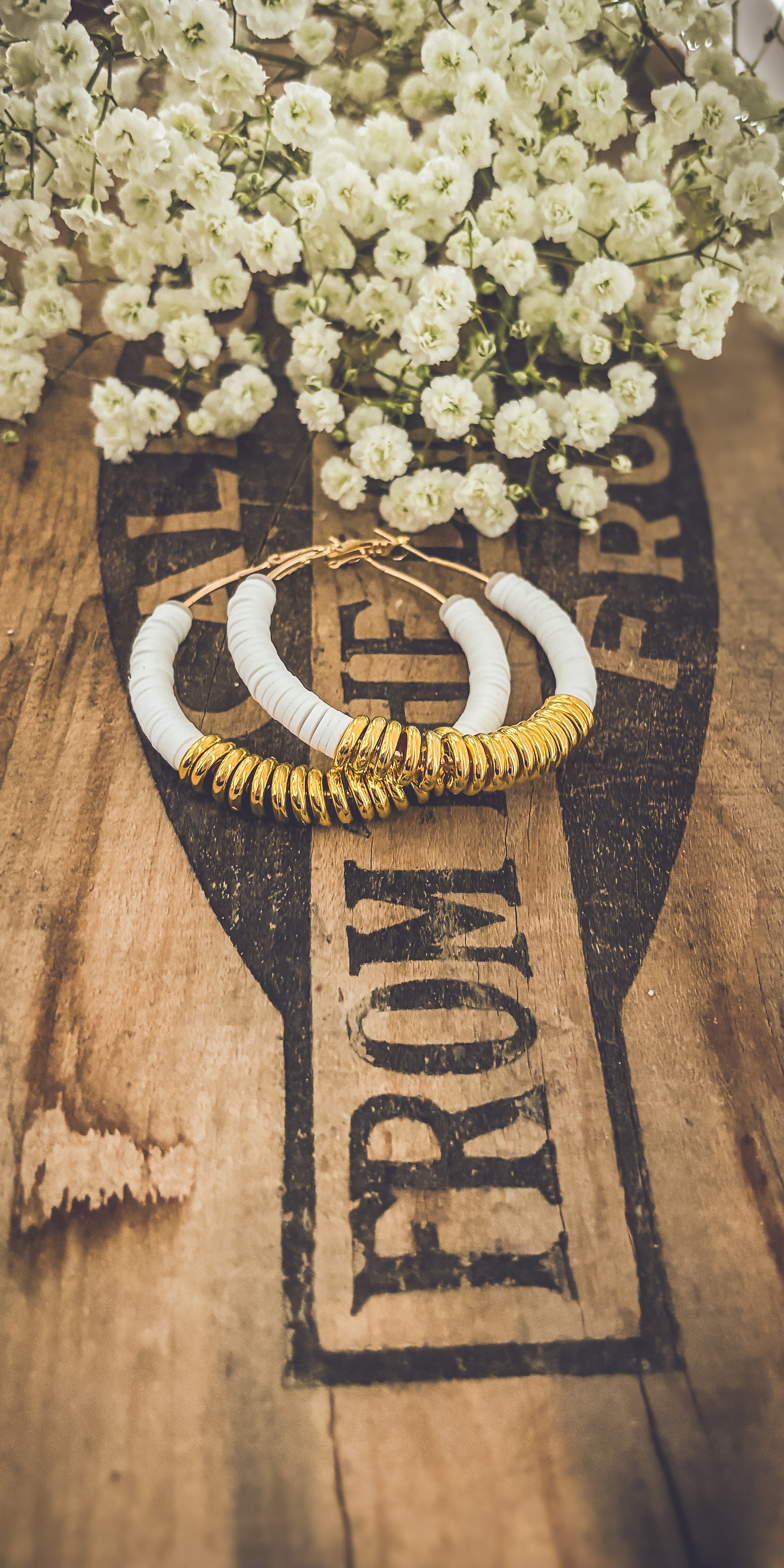 Beautiful White and Gold Clay Hoops