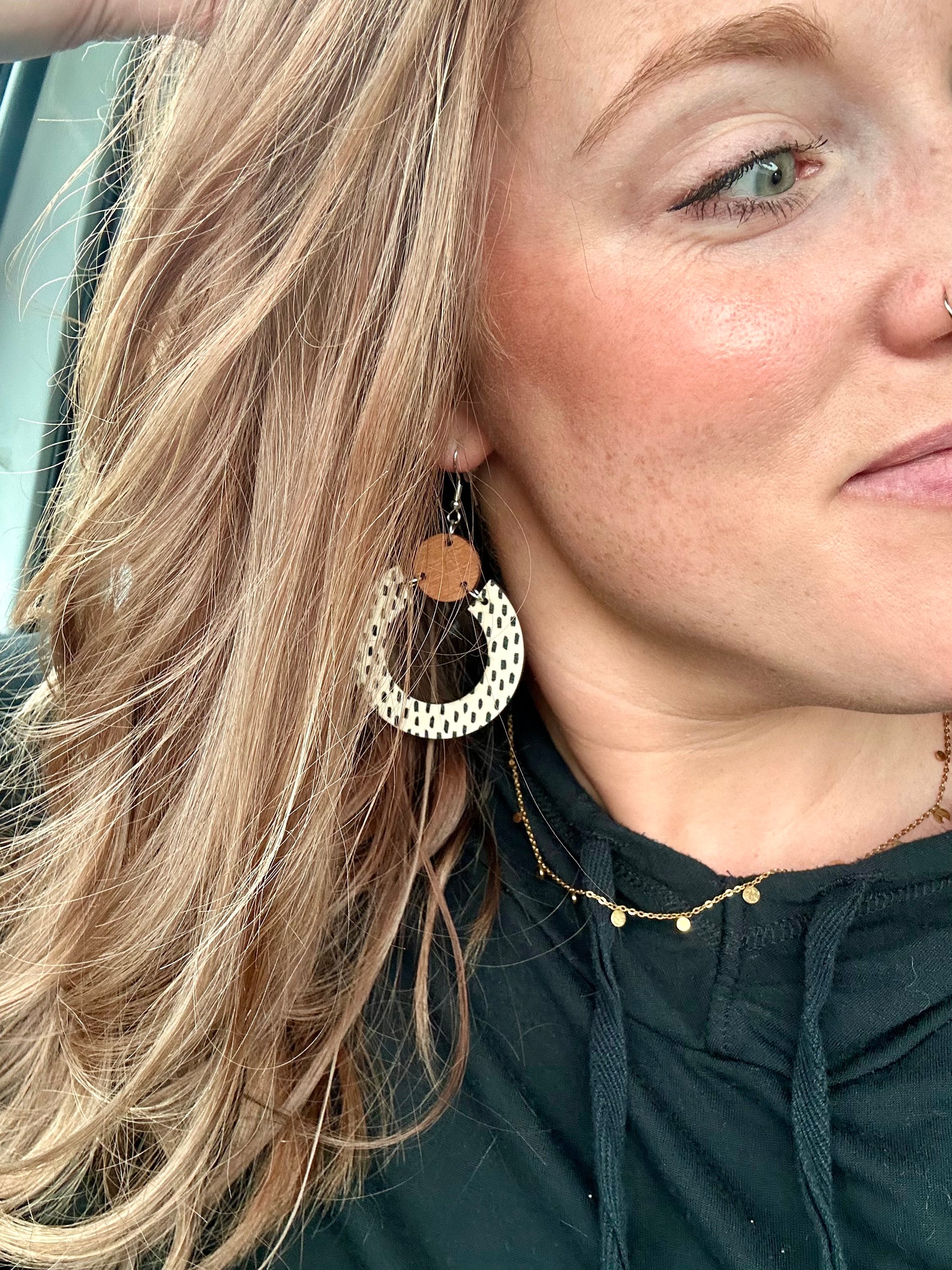 Add a touch of elegance to your outfit with our Beautiful White Wood Circle Earrings. Crafted with care, these unique earrings are perfect for any occasion, featuring a soft and delicate white hue that adds a touch of femininity and sophistication to your look.
